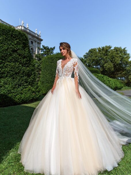 Royal GardenEvery stitch, every fold of Royce speaks of perfection. Its nan silhouette, combined with the opulence of 3d lace, lace, tulle, ensures that the bride looks and feels like a dream. It’s a gown that stands as a beacon of bridal elegance and sophistication.