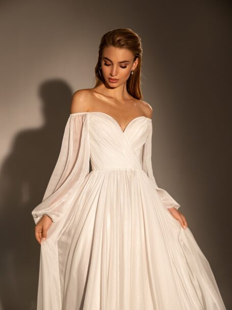 Styling a chiffon wedding gown for a “wow” effect is easy. You can accessorize it with delicate jewelry to enhance the romantic look or opt for a more minimalist approach to keep the focus on the fabric's beauty. The flowing skirt of a chiffon dress pairs beautifully with a boho flower crown or a classic veil. The choice is yours, and with chiffon gowns, the possibilities are endless!