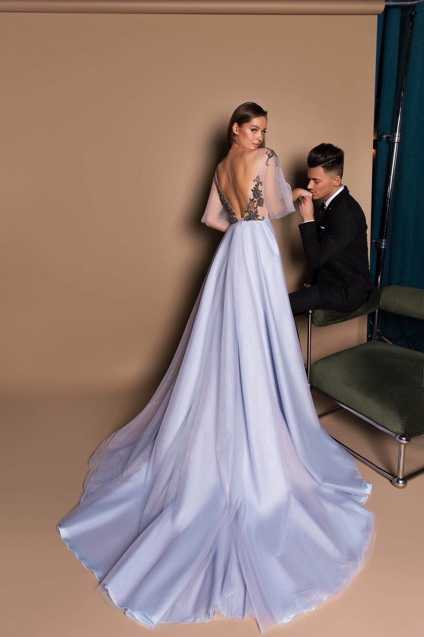 Floor length evening dress «18113» with open back