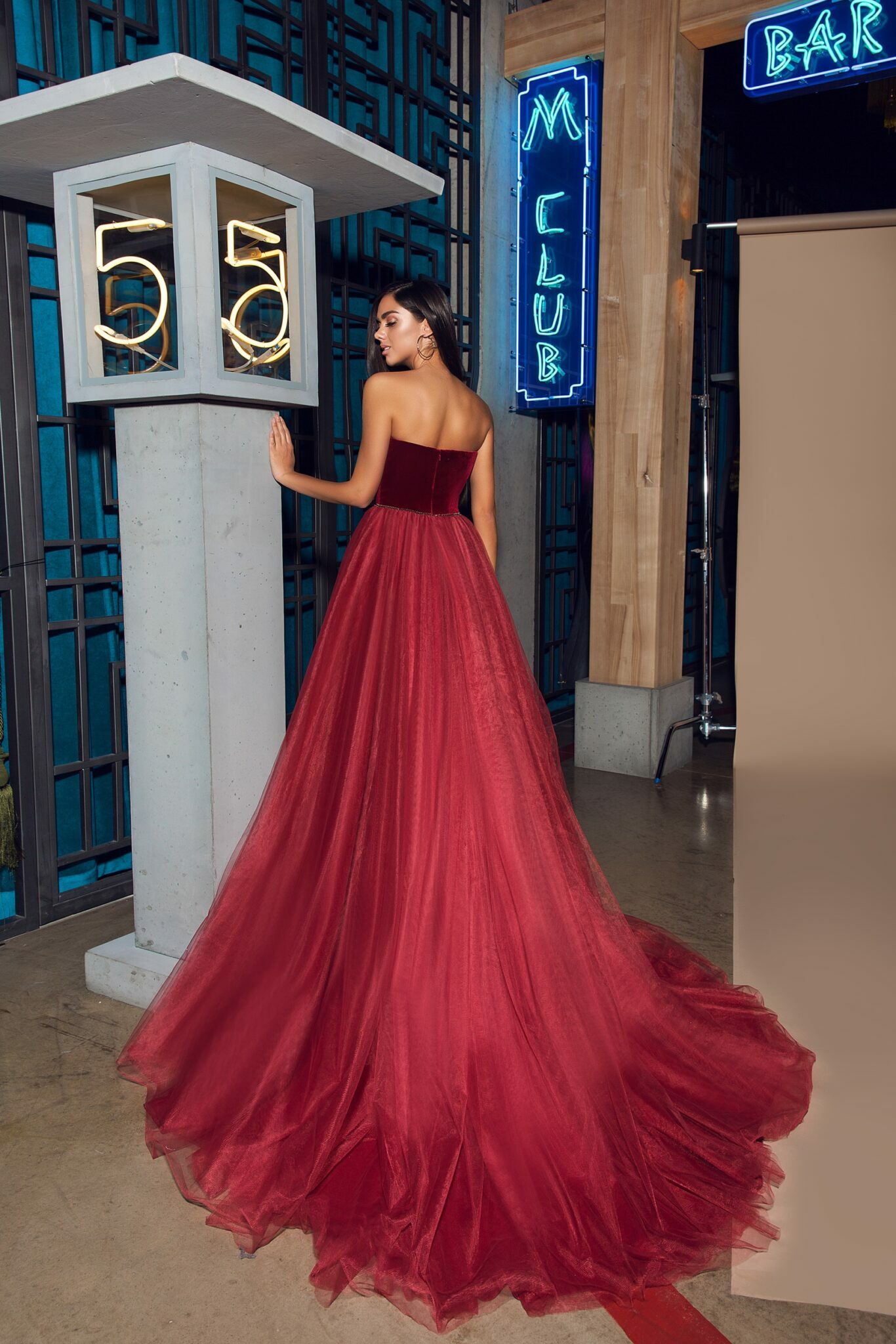 Cinema NightMake a statement with the 18121. Its luxurious tulle, velvet and a-line silhouette are the epitome of evening glamour.