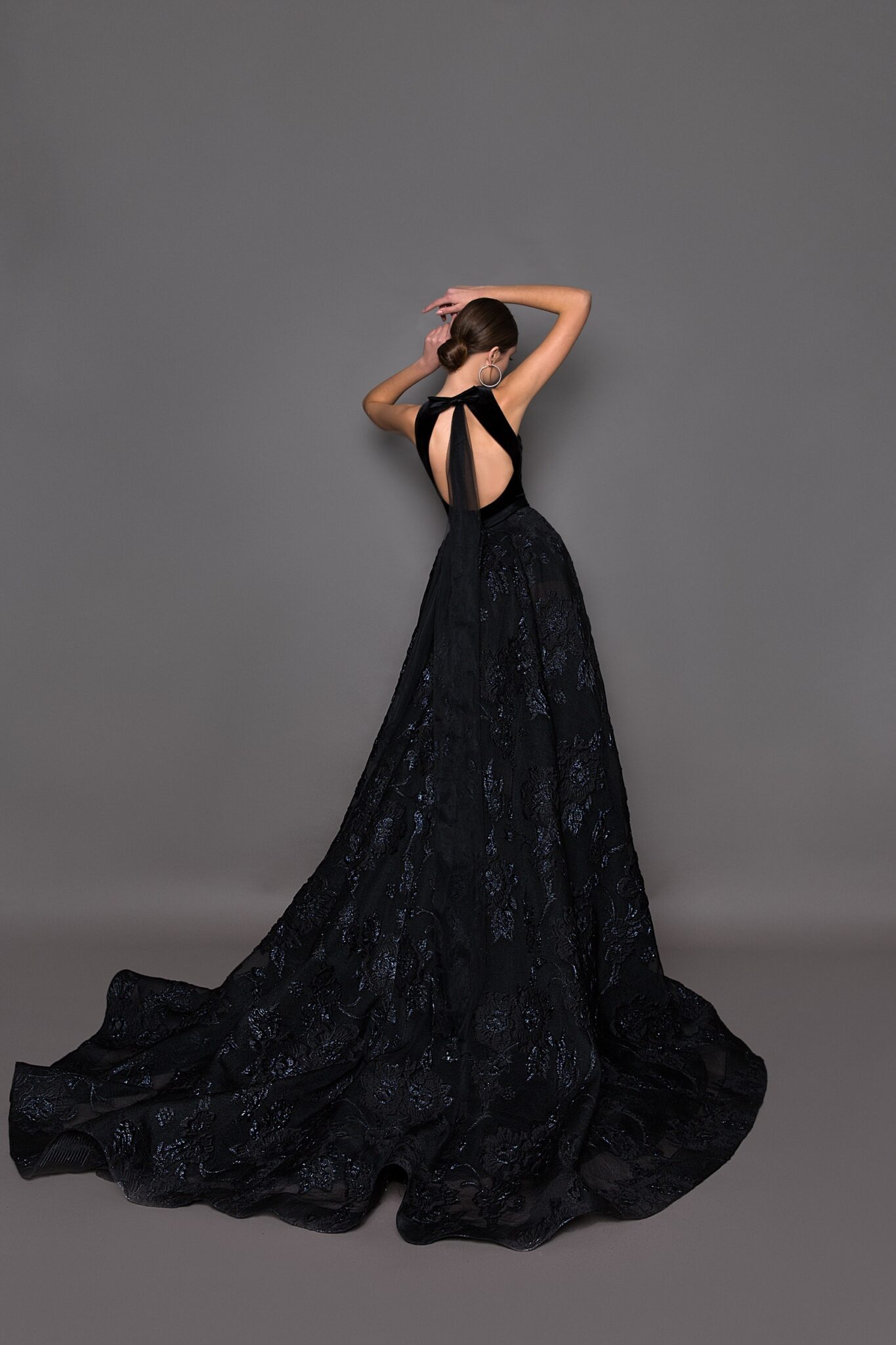 Floor length evening dress «19101» with open back