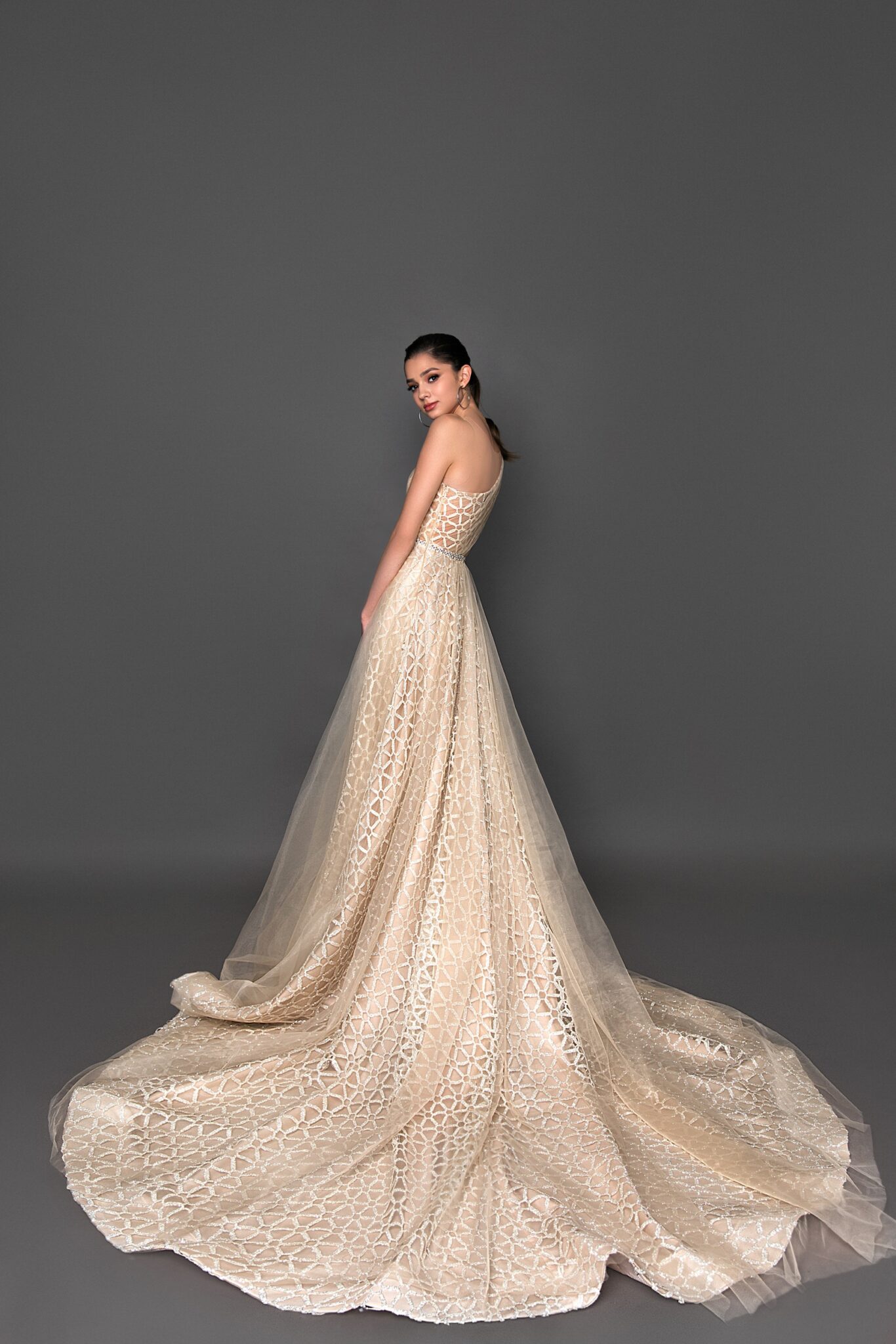 Glam VibesThe 19120 is where classic meets contemporary. Fashioned in rich lace, sparkle, tulle, its a-line silhouette exudes a charm that’s hard to resist.