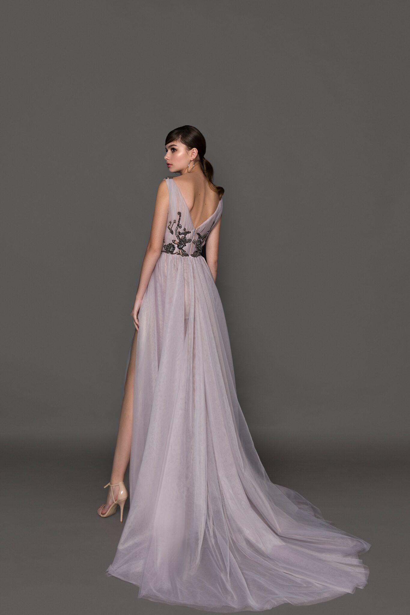 Floor length evening dress «19233» with slit