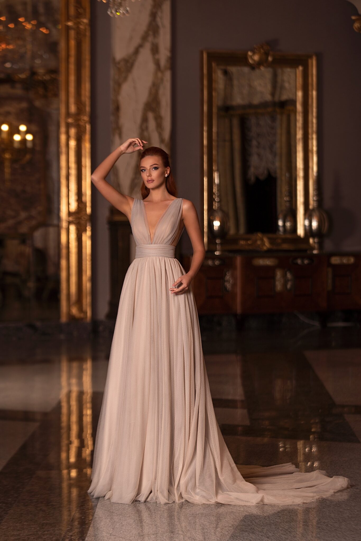 EuphoriaFor an evening of elegance and grace, the 20310 dress is your perfect companion. Its tulle spells luxury, and the a-line silhouette adds a touch of modern allure.