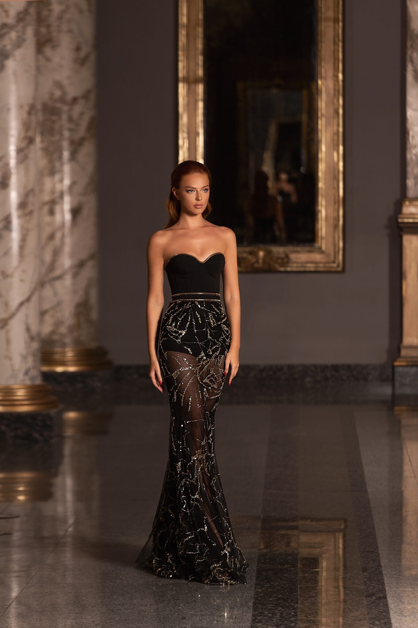 EuphoriaWith the 20610, make every entrance grand. The luxurious sparkle, velvet paired with its sheath silhouette makes it an unparalleled piece of art.