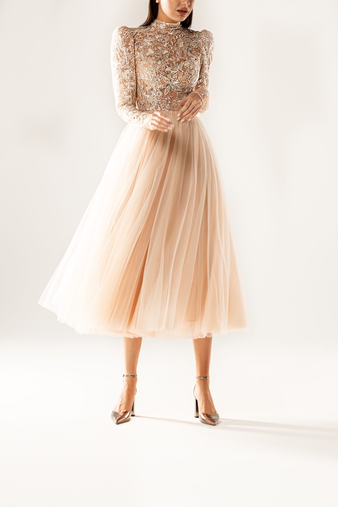 SS2021 Evening CollectionThe 21121 evening gown promises an evening of allure and admiration. Its rich lace, sparkle, tulle and a-line silhouette make it a true masterpiece.