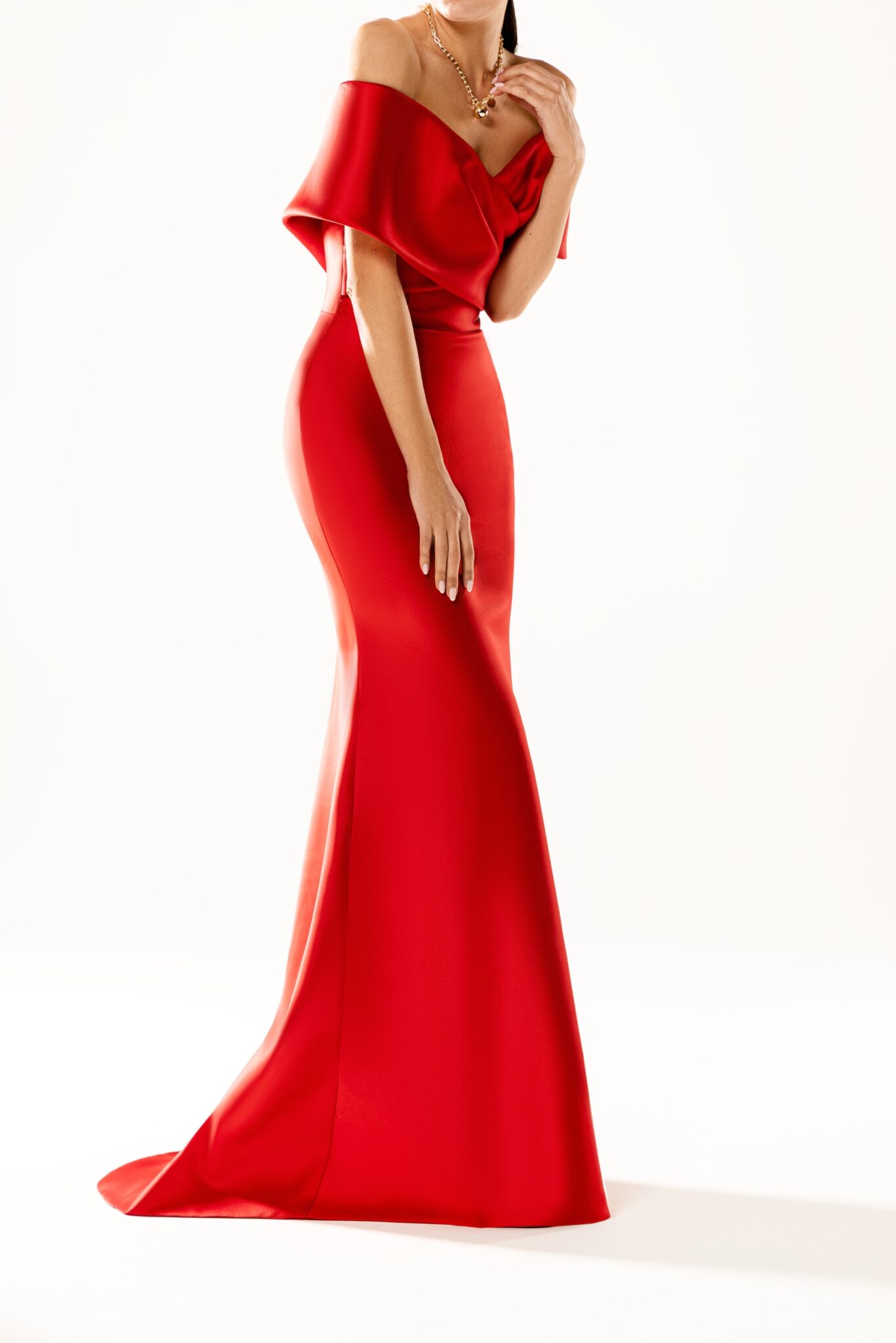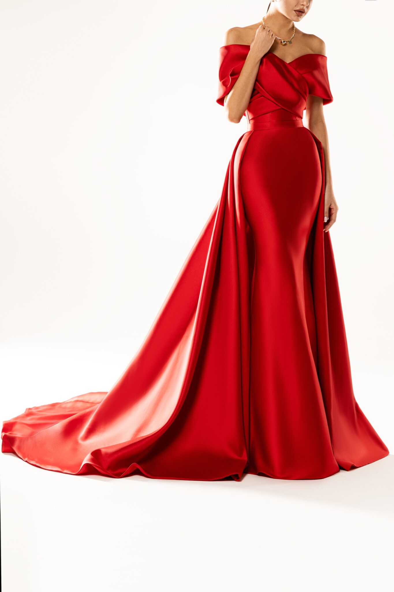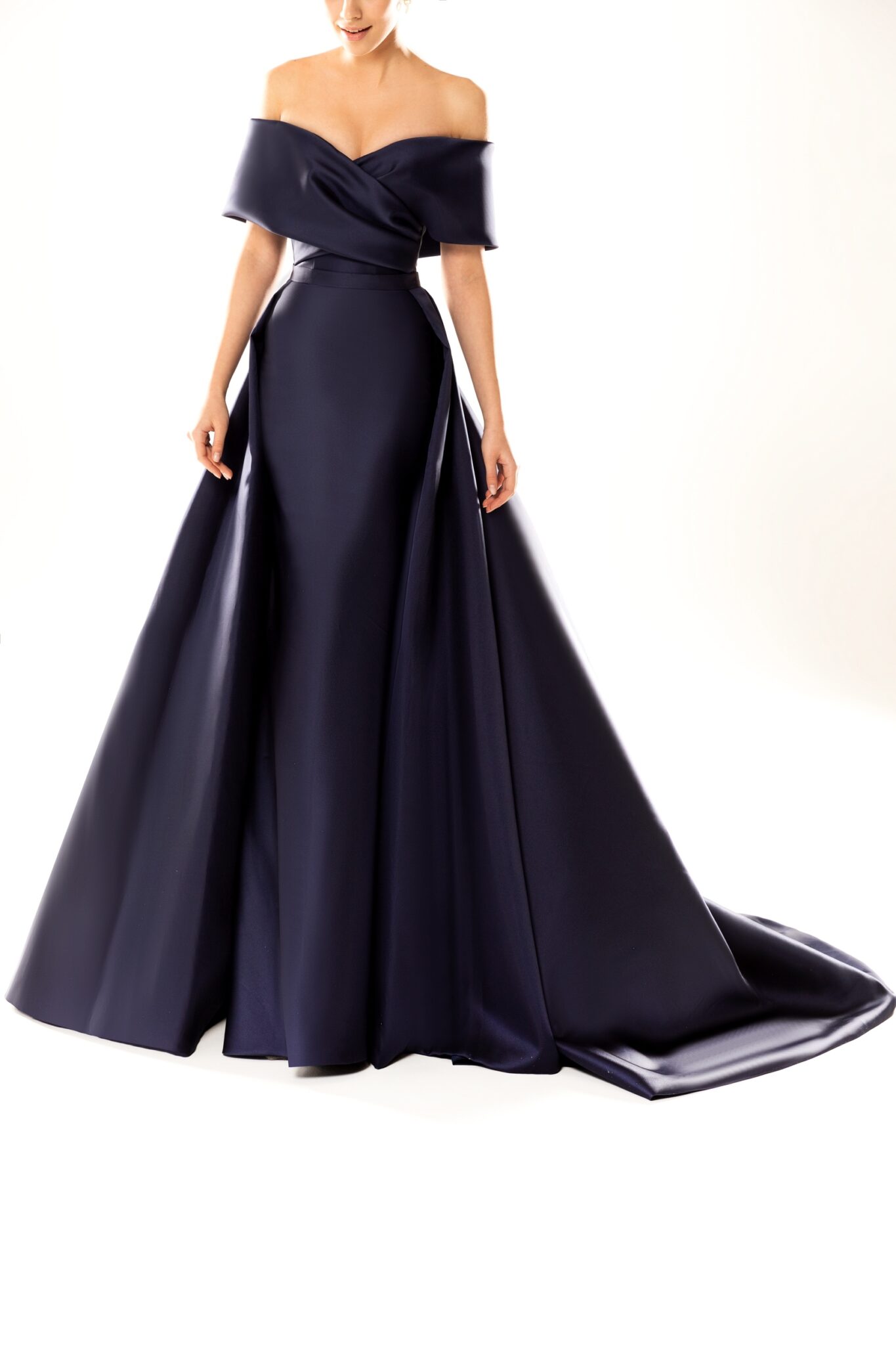SS2021 Evening CollectionBe the epitome of grace and style with the 21130. Its mikado silk fabric and fitted with overskirt silhouette promise an evening of glamour and allure.