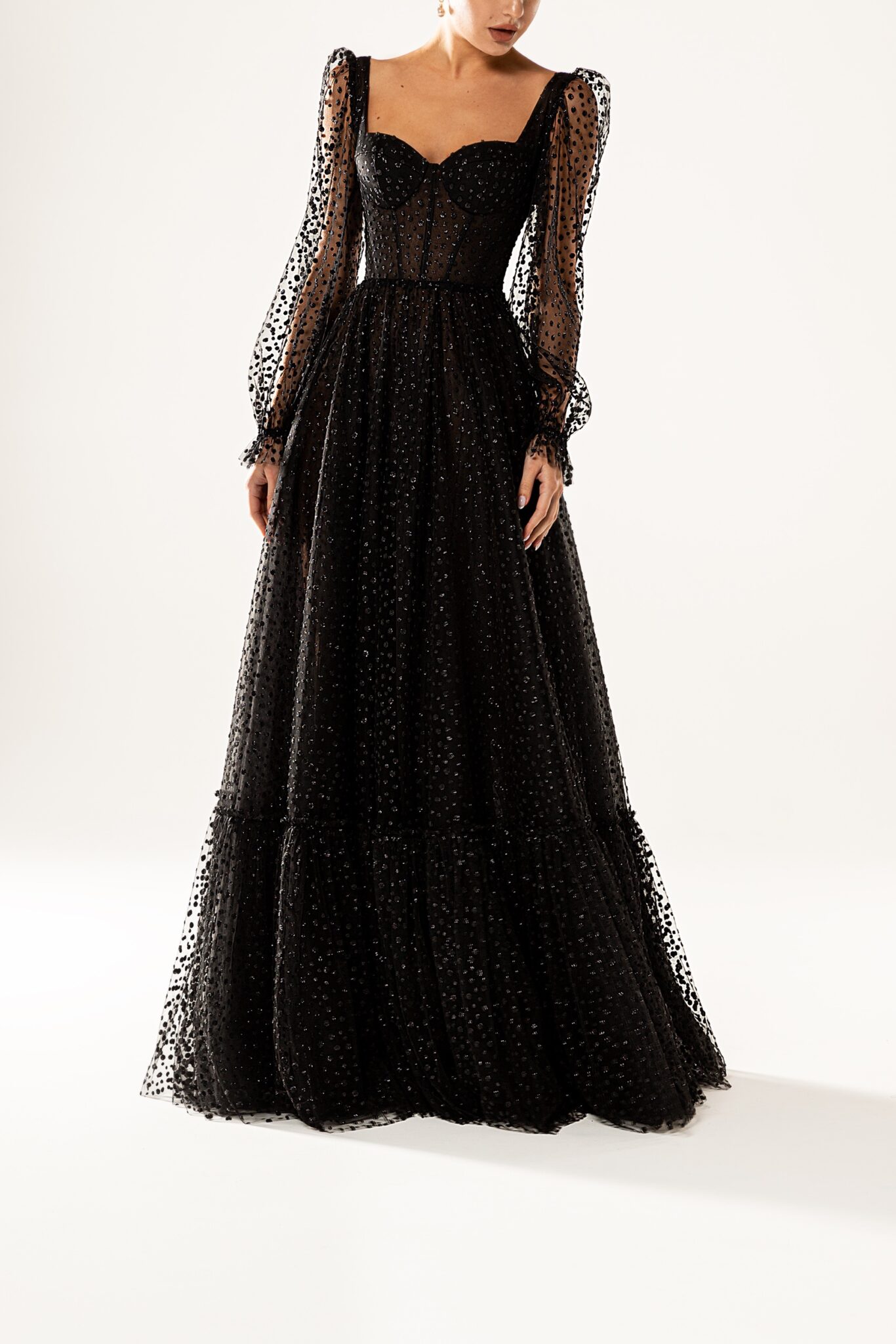 SS2021 Evening CollectionFor an evening of elegance and grace, the 21145 dress is your perfect companion. Its sparkle, tulle spells luxury, and the a-line silhouette adds a touch of modern allure.