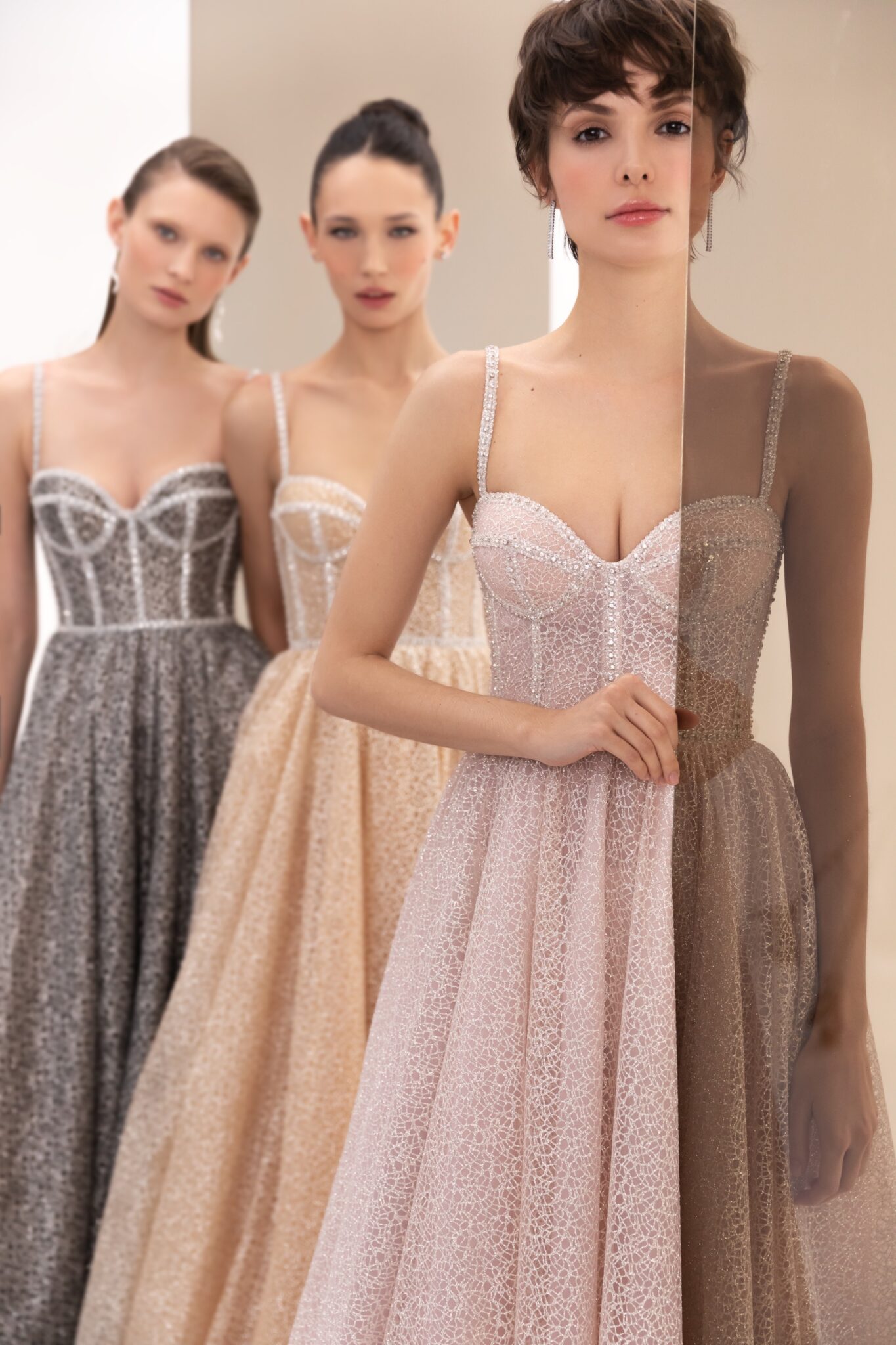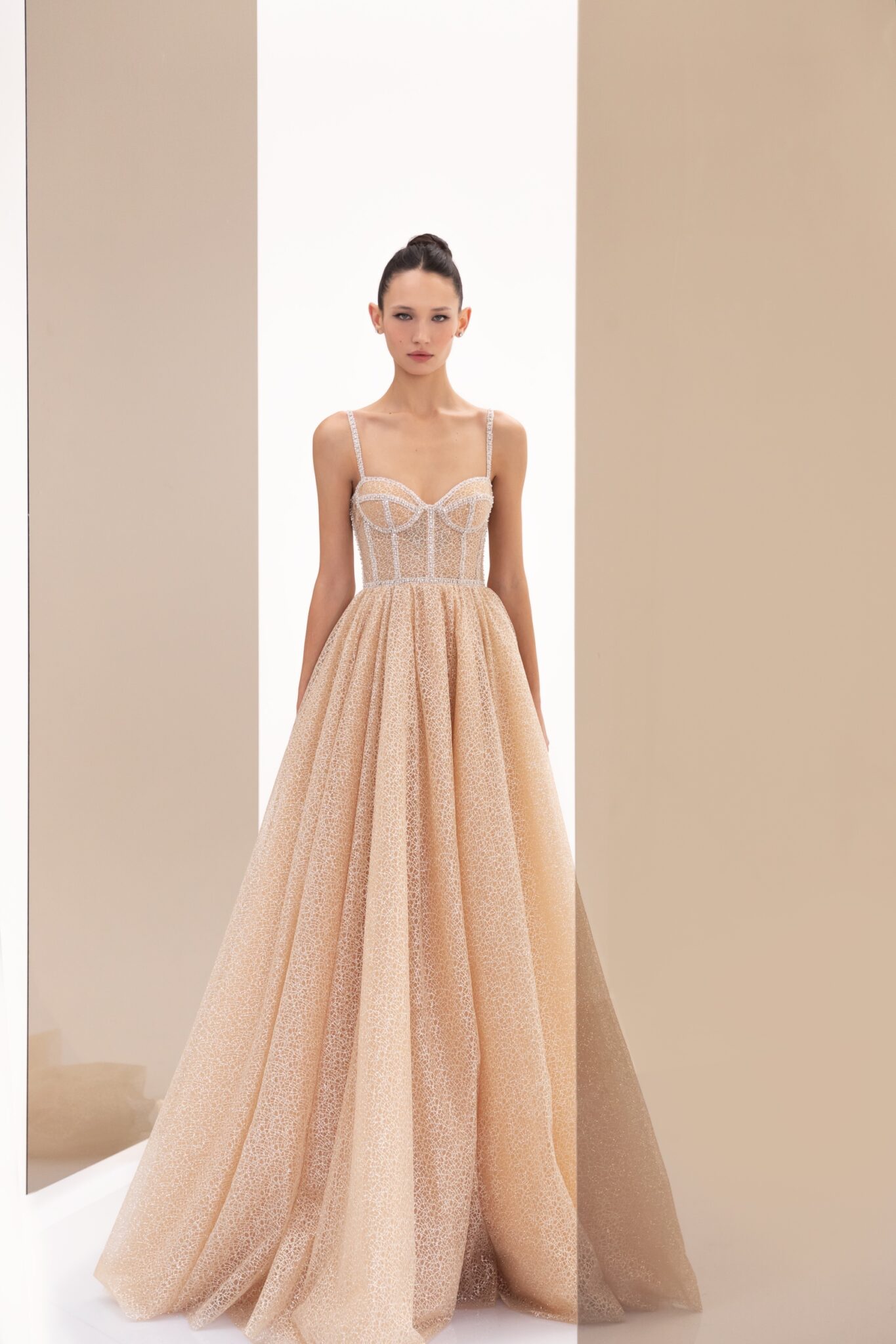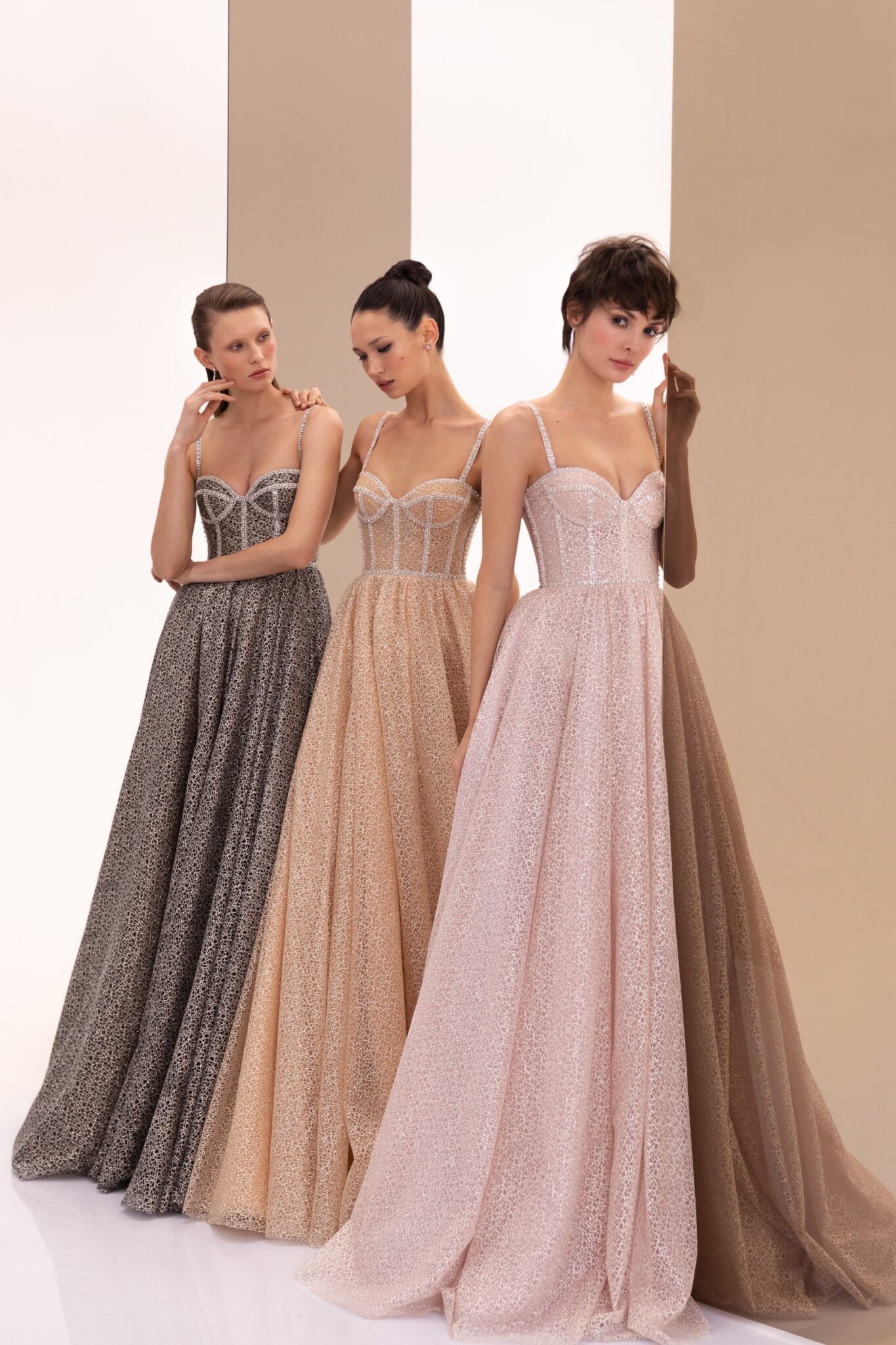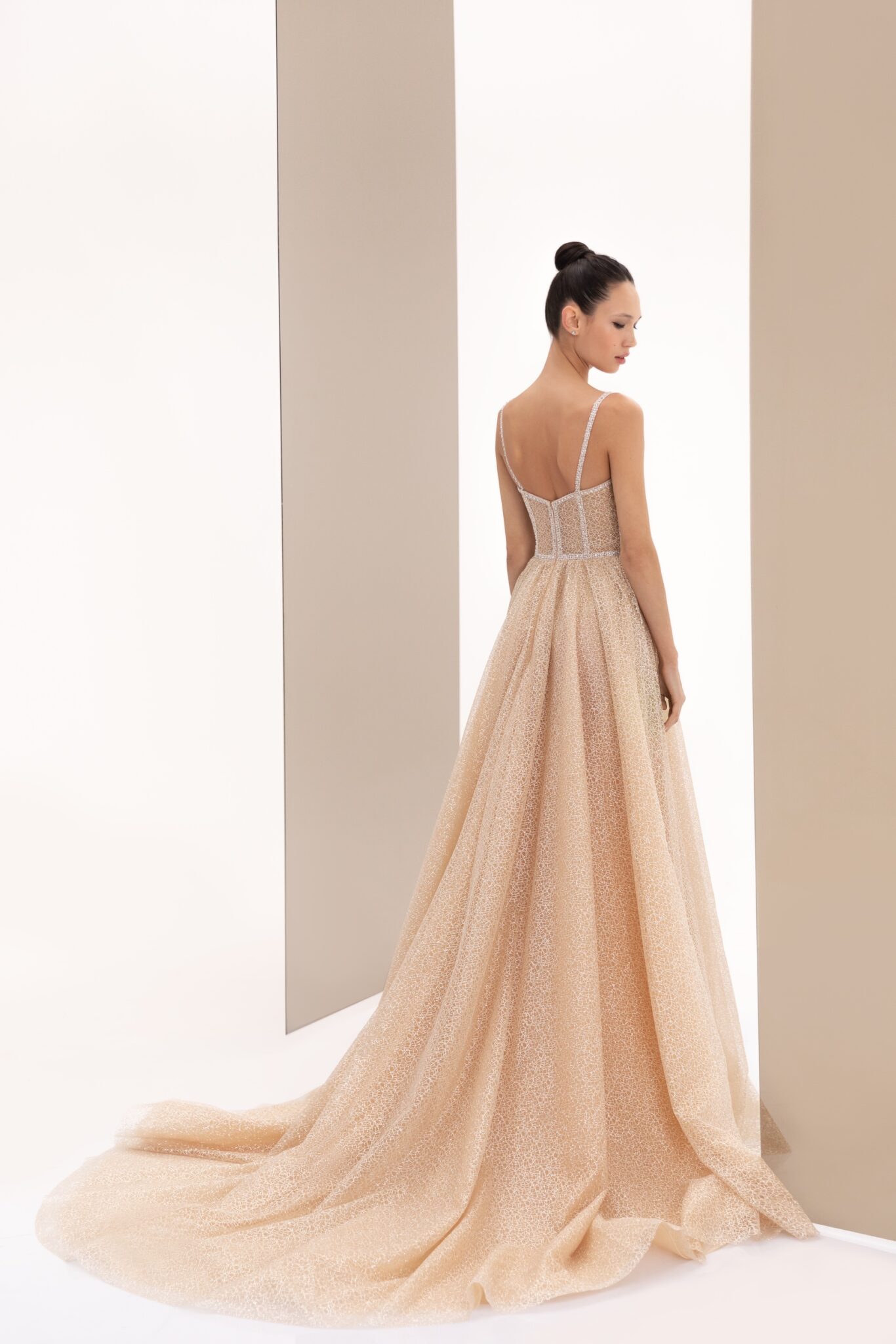 SS2022 Evening CollectionDazzle the room as you step in wearing the 22114. The sparkle fabric combined with its a-line silhouette is sure to make you the evening’s shining star.