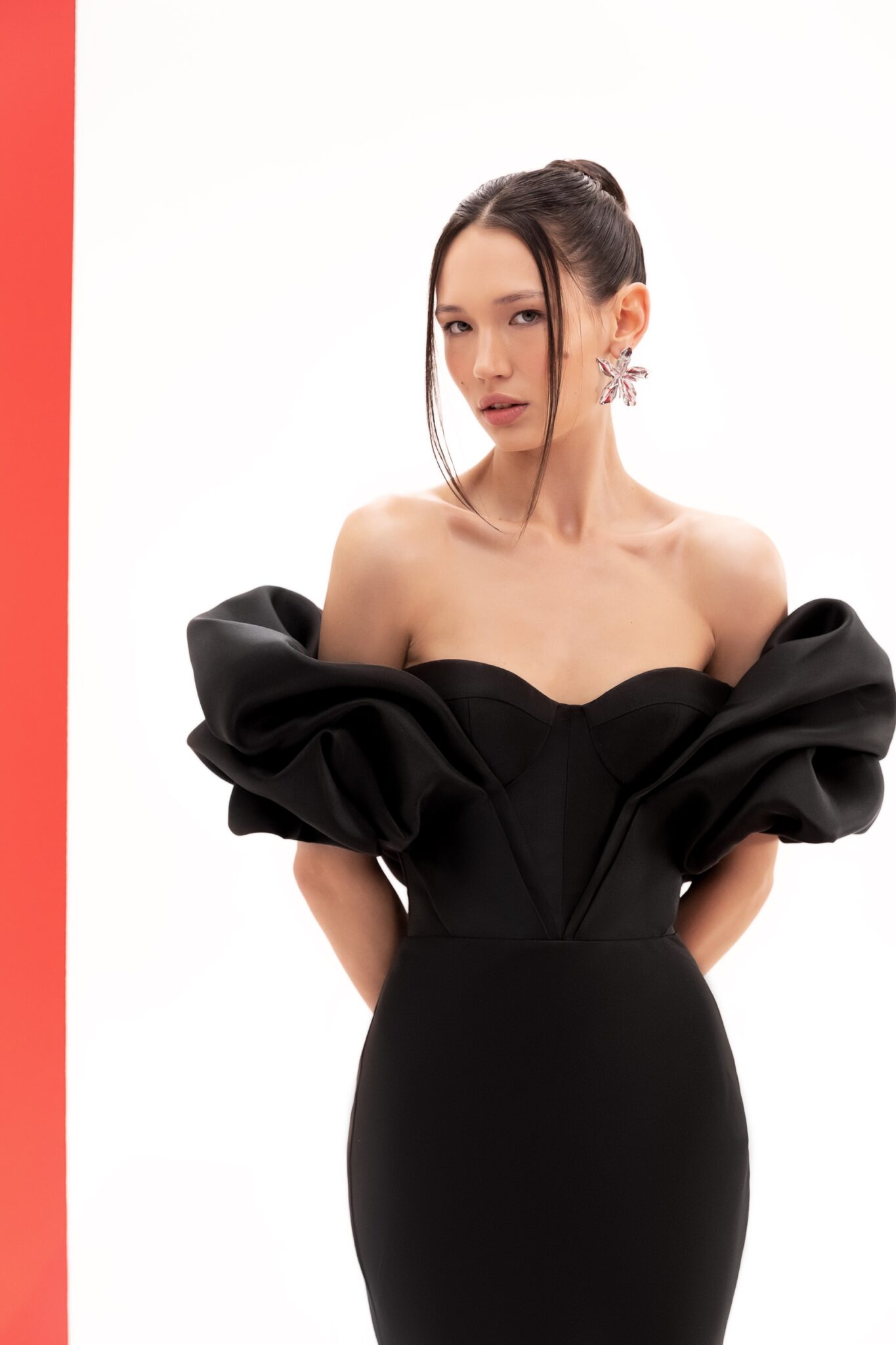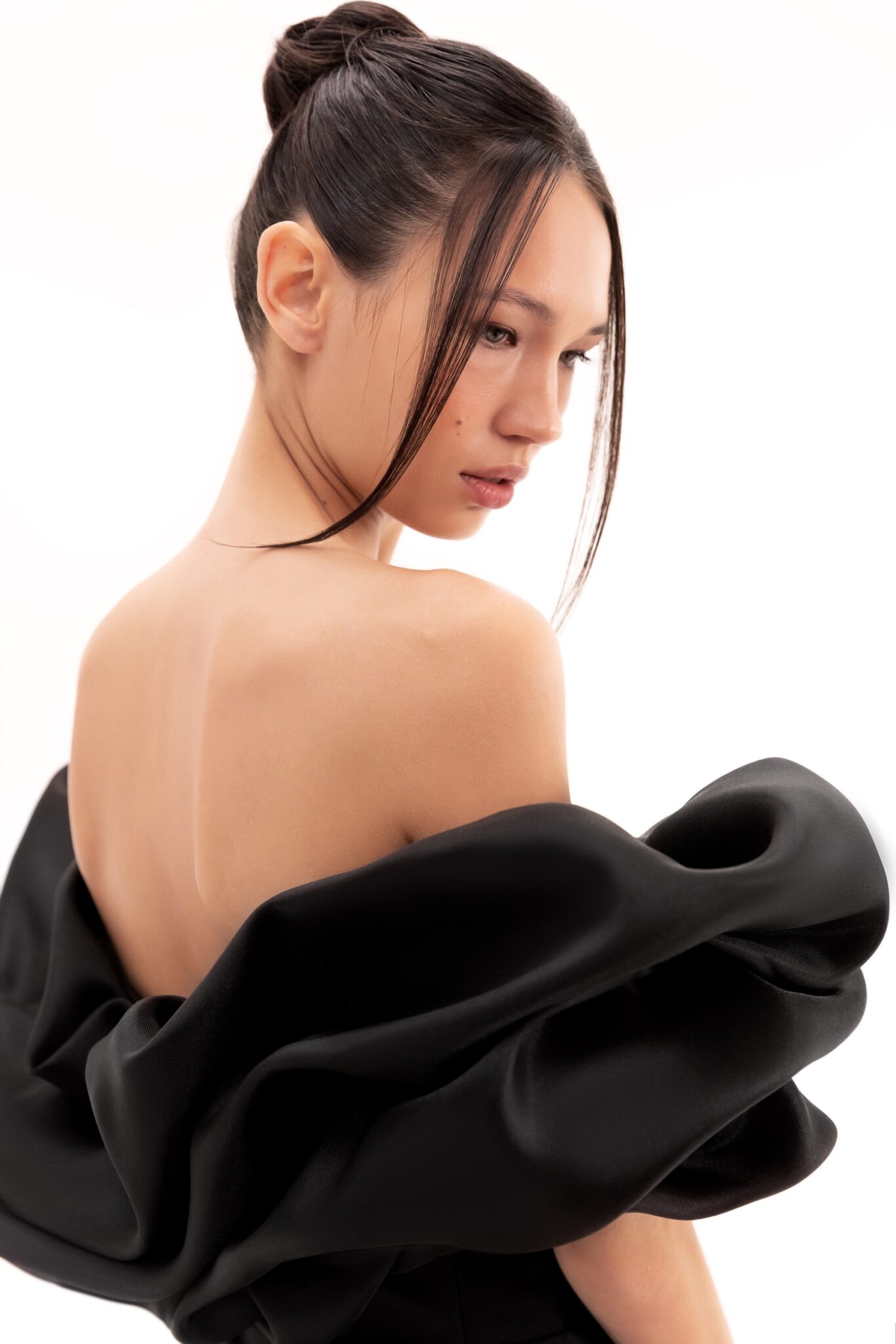 SS2022 Evening Collection, Plus SizeDesigned for the modern woman, the 22128 with its rich mikado silk and sheath silhouette is the perfect blend of tradition and modernity.