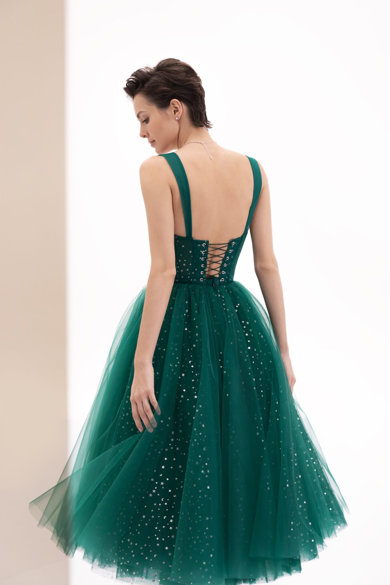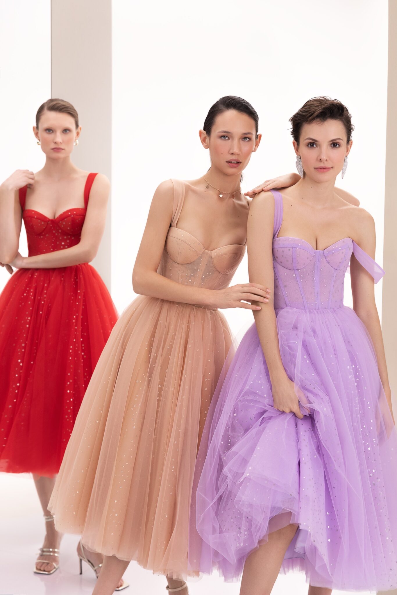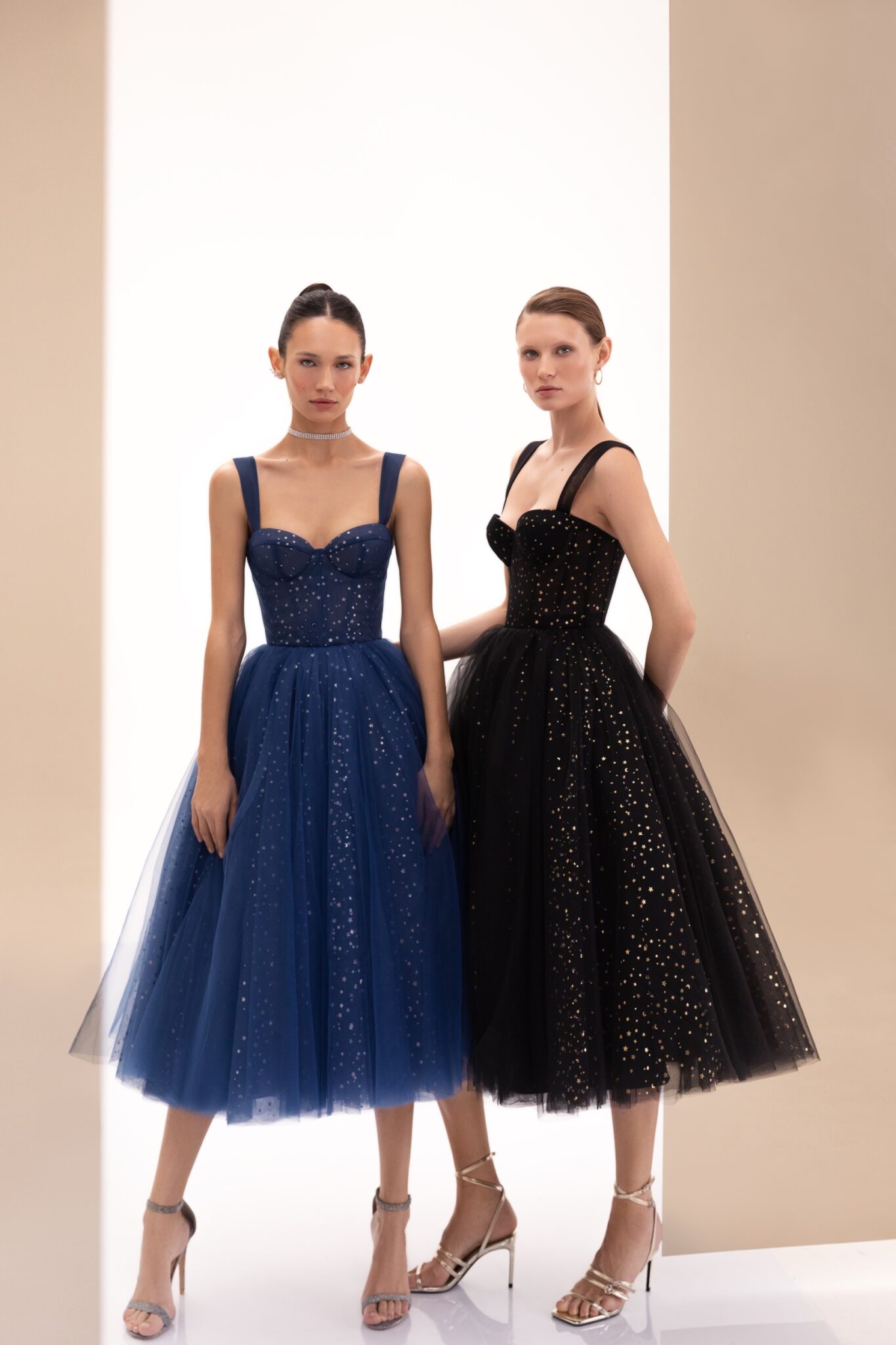 SS2022 Evening CollectionAn ode to modern elegance, the 22130 evening dress with its rich sparkle, tulle and a-line silhouette is a wardrobe masterpiece.