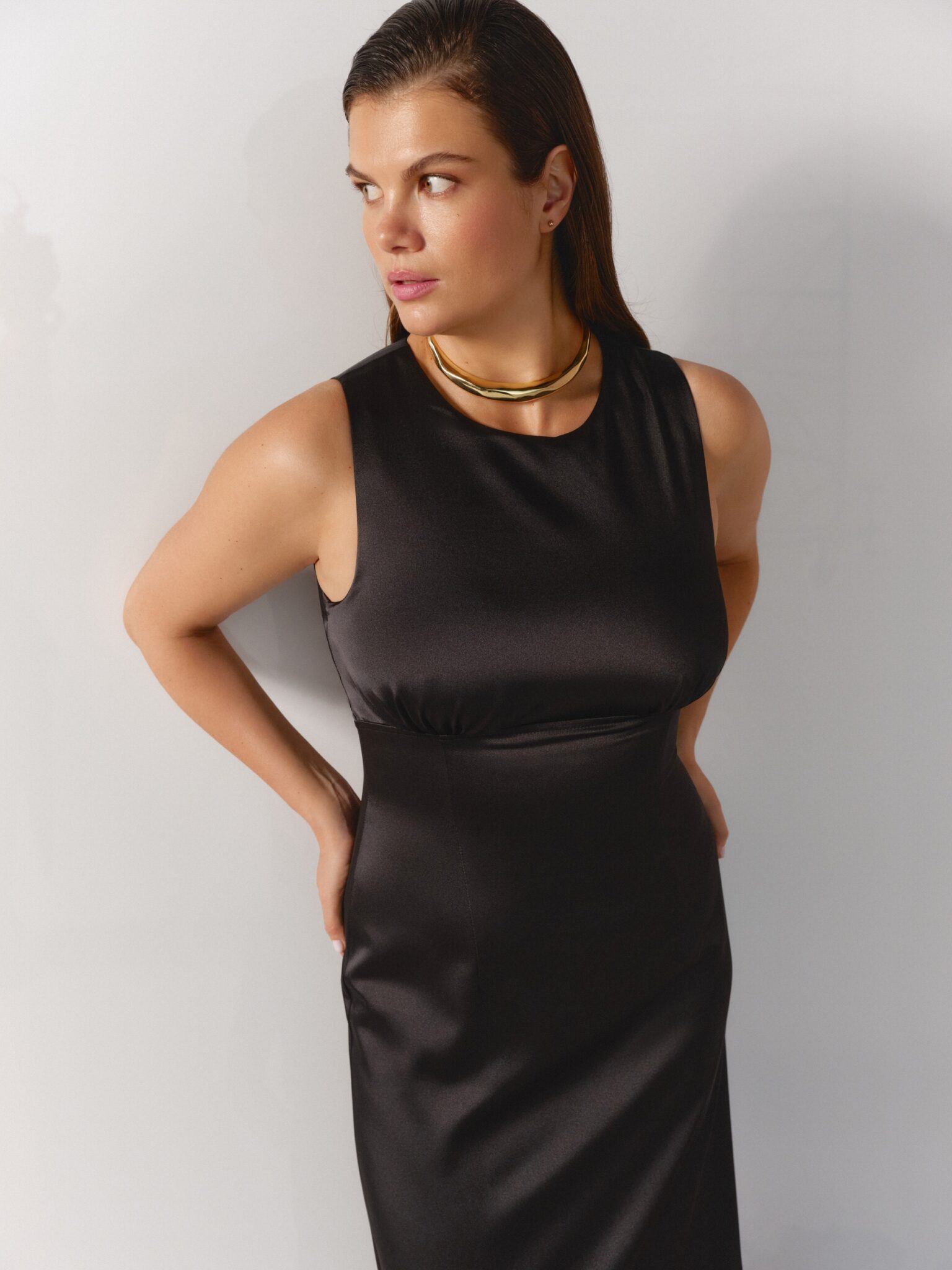 BridesmaidsCapture hearts in this sheath gown, with a charming round neck that exudes elegance. The silk fabric in blush, lavender, fuchsia, red, navy, blue, green, cappuccino and black color options is a dream to wear. It’s perfect for an evening dress or a bridesmaid gown.