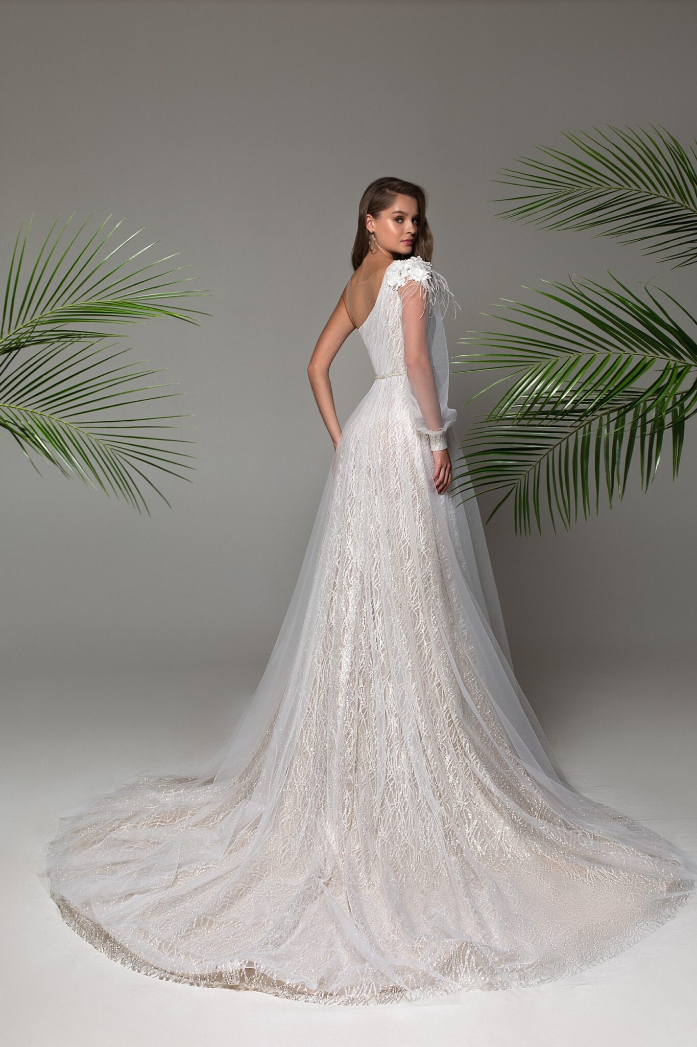 Bohemian FlowerStep into the spotlight with Alteya. Its a-line silhouette, draped in the luxury of feathers, lace, sparkle, tulle, is all about opulence and grandeur. It’s a gown that promises to make the bride the star of her big day, capturing the essence of pure elegance.