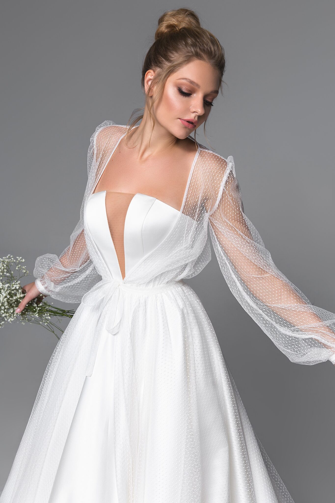 Low back wedding dress «Aria» with detachable bolero