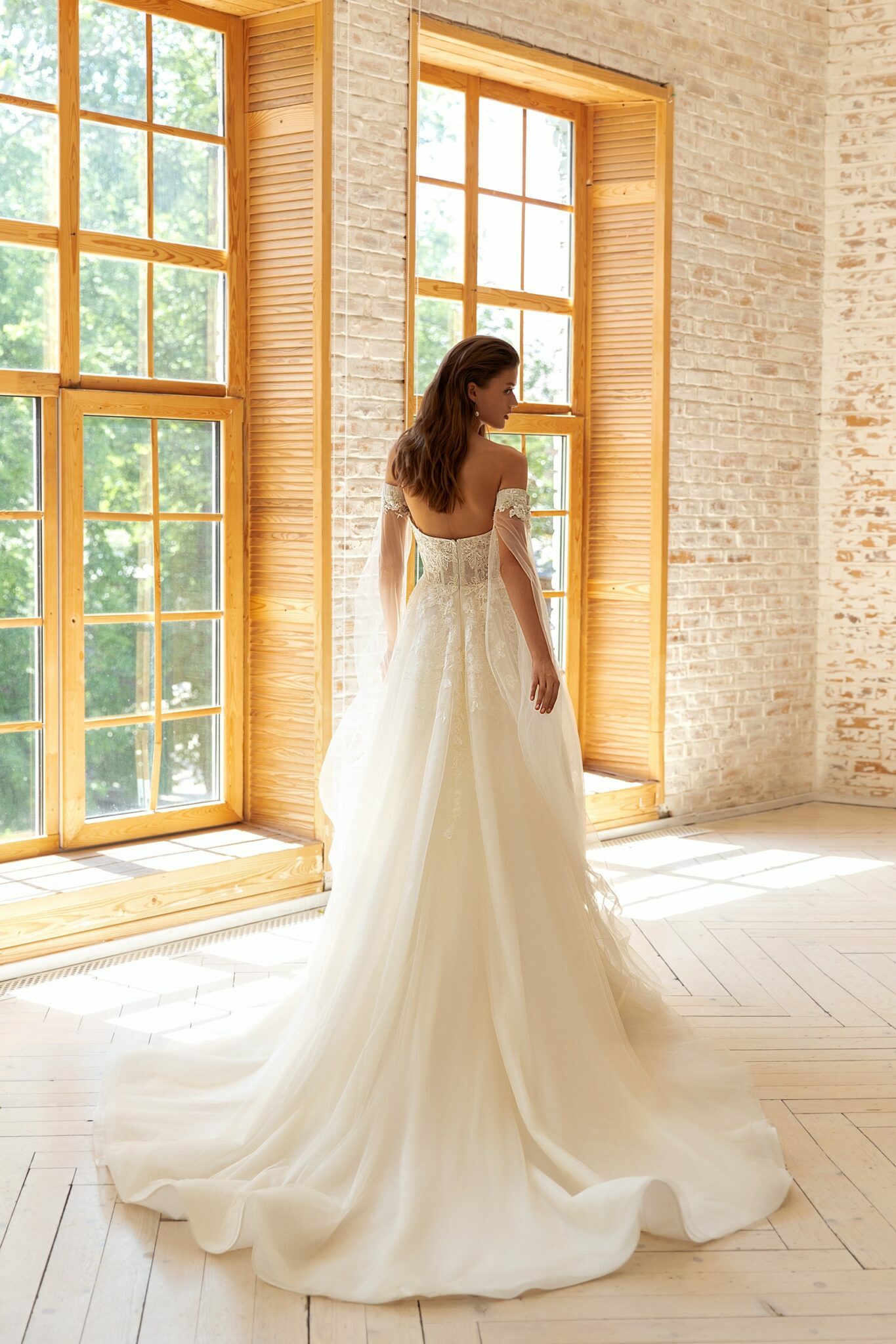 Low back wedding dress «Betsy» with detachable sleeves
