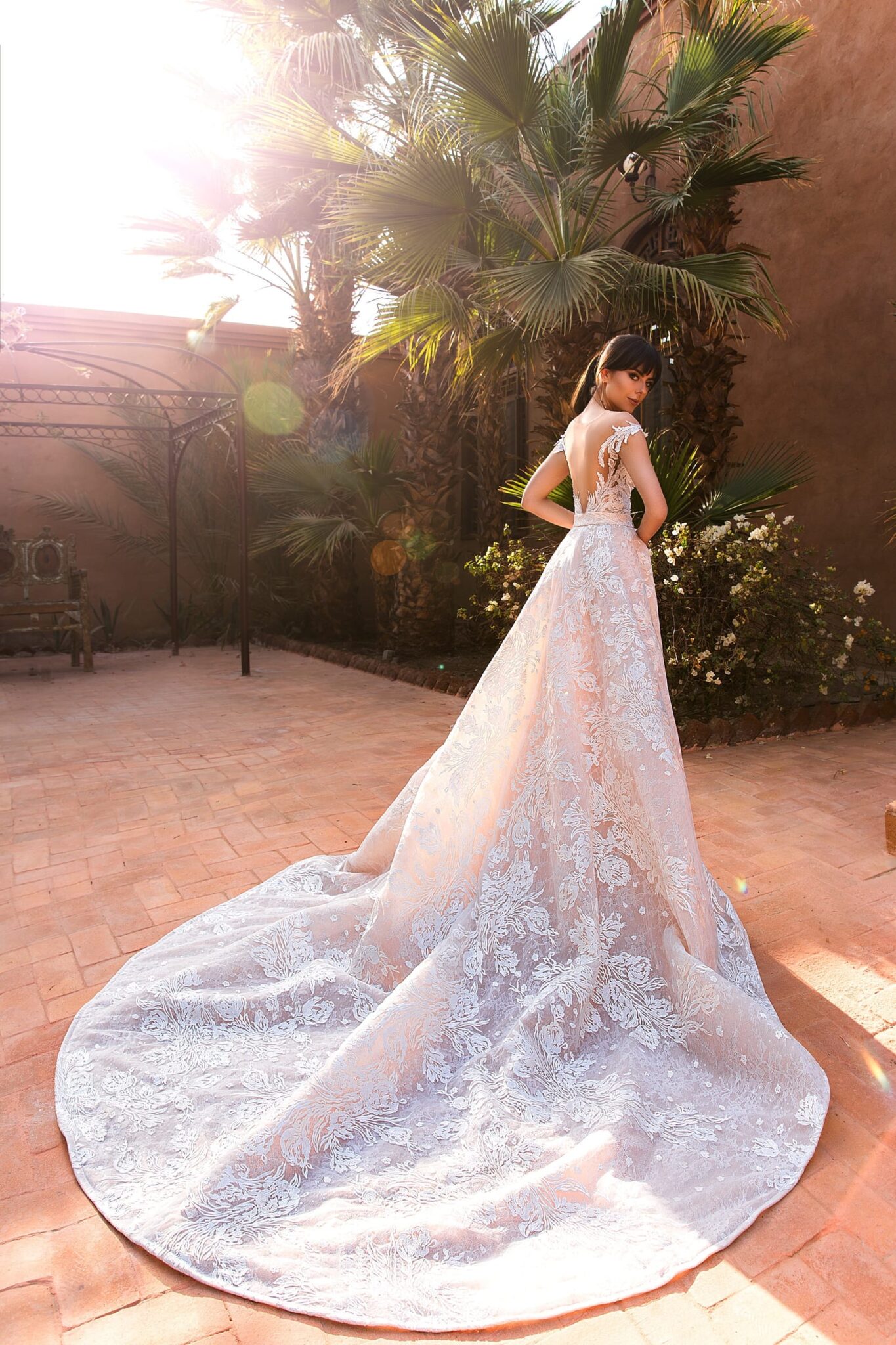 Low back wedding dress «Butterfly» with detachable skirt