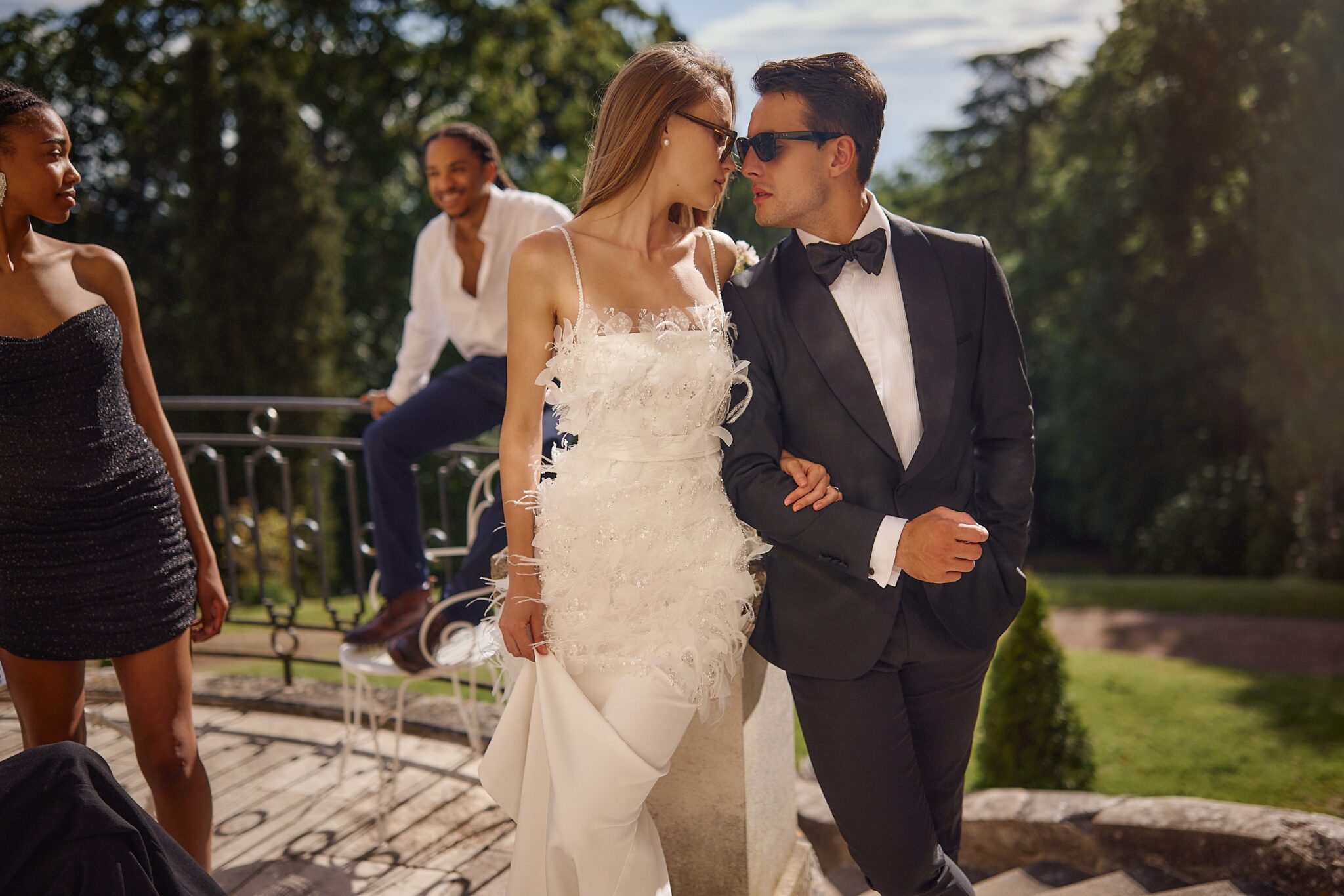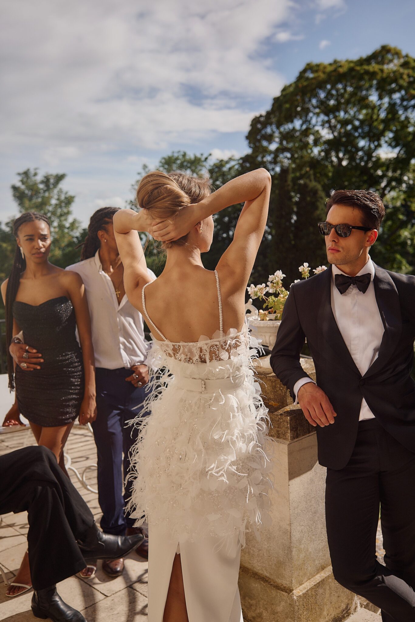 Buttons wedding dress «Cascade» with feathers