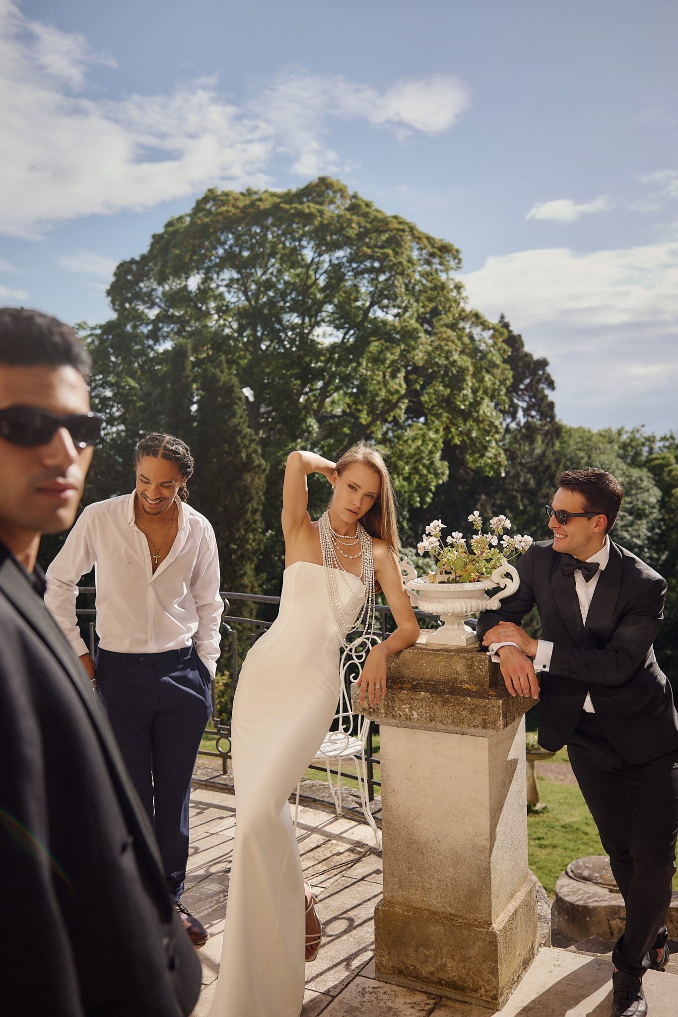 Love StoryStrapped tube dress featuring voluminous handcrafted ornament of petals, beads and feathers on the top. The smooth skirt is complemented by a backside split.