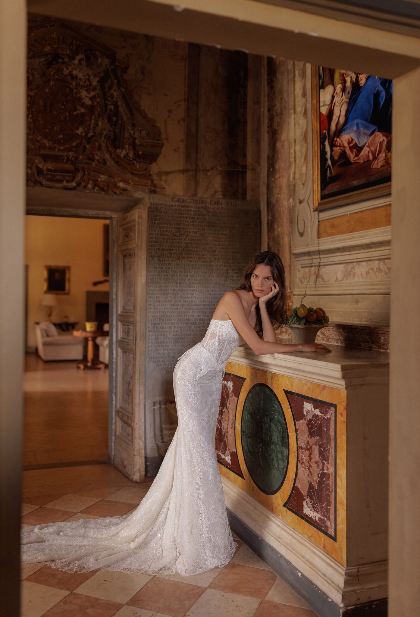 L'Unico, Plus SizeMeticulous craftsmanship: smooth pointed neckline strapless corset top with smooth skirt adorning the waist and hips, the dress features mildly shining embroideries all over.