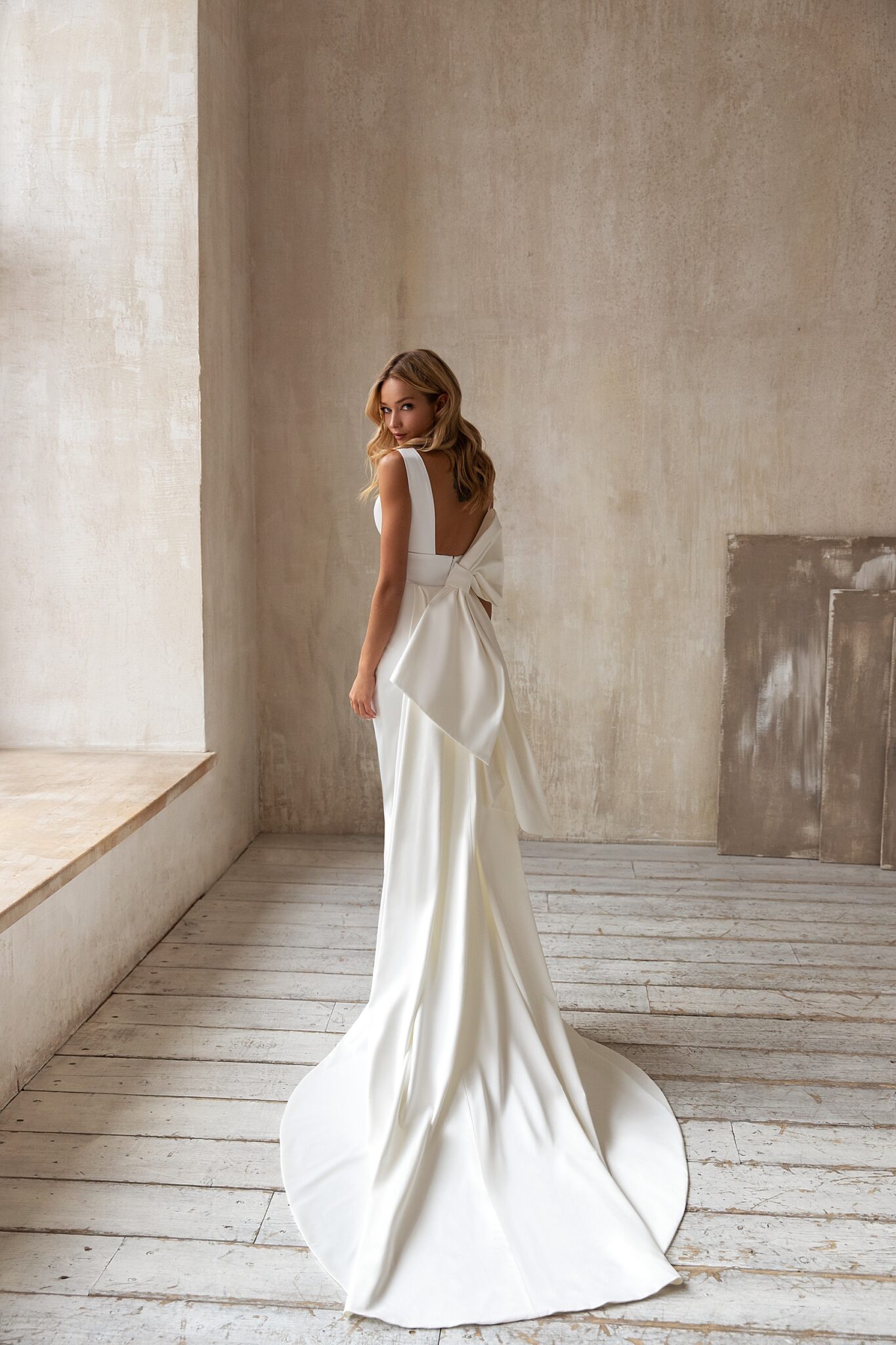 Low back wedding dress «Debora» with bow