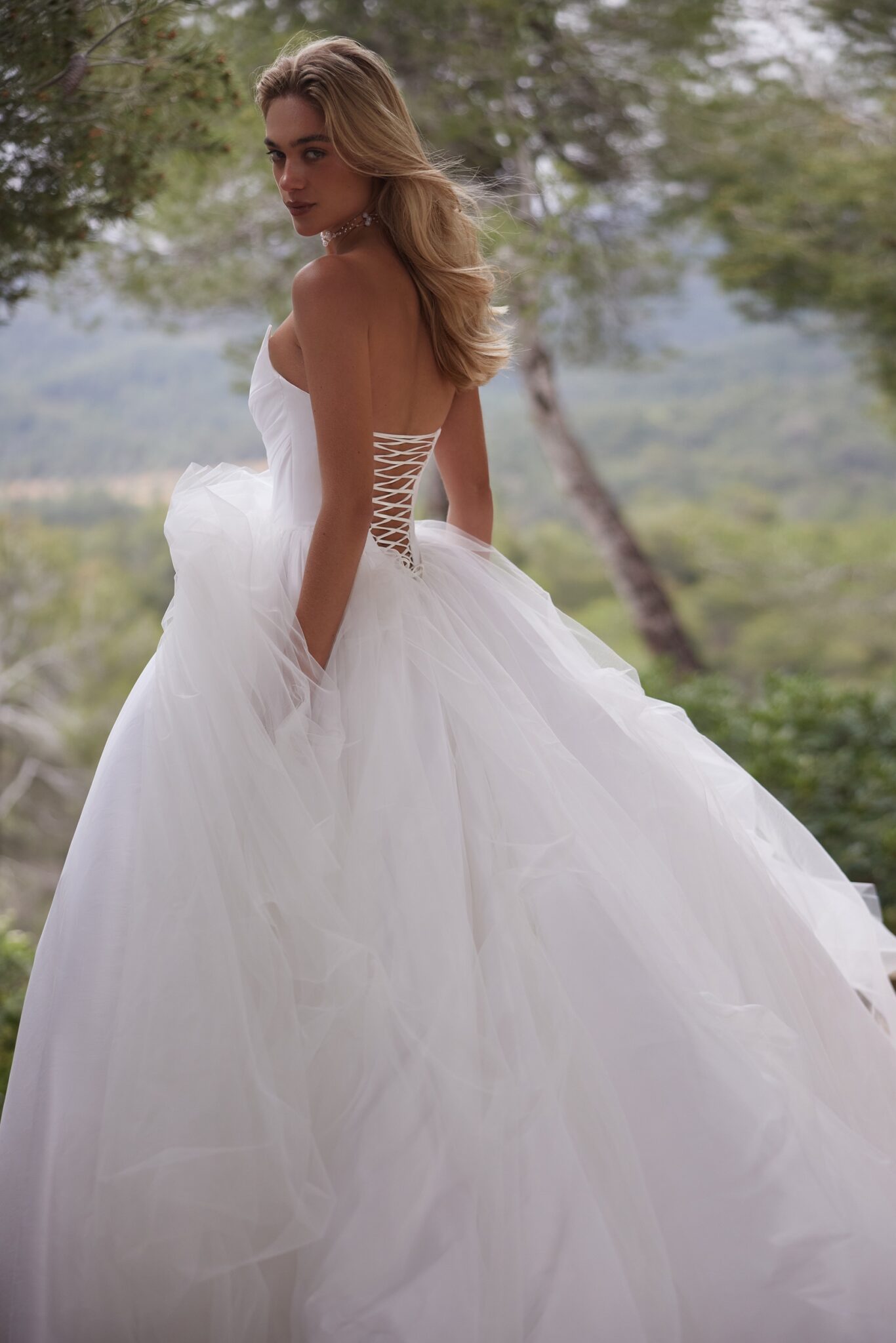 Lacing wedding dress «Deliz» with detachable overskirt