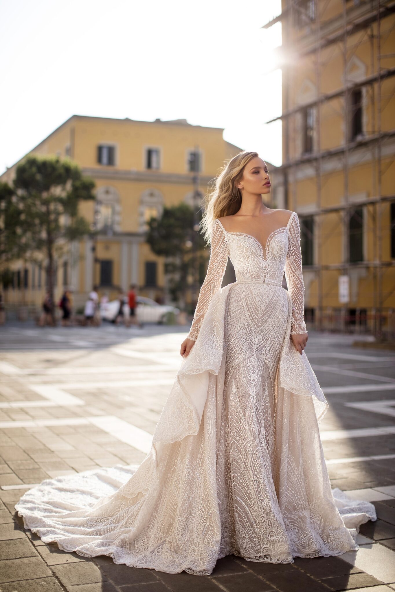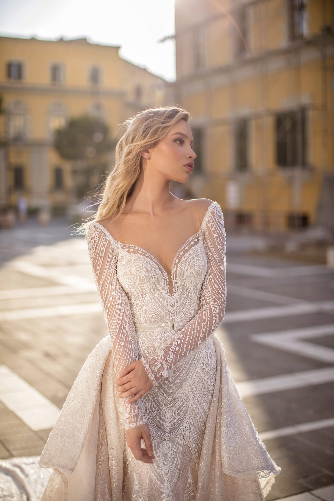 Boat wedding dress «Donna» with detachable overskirt