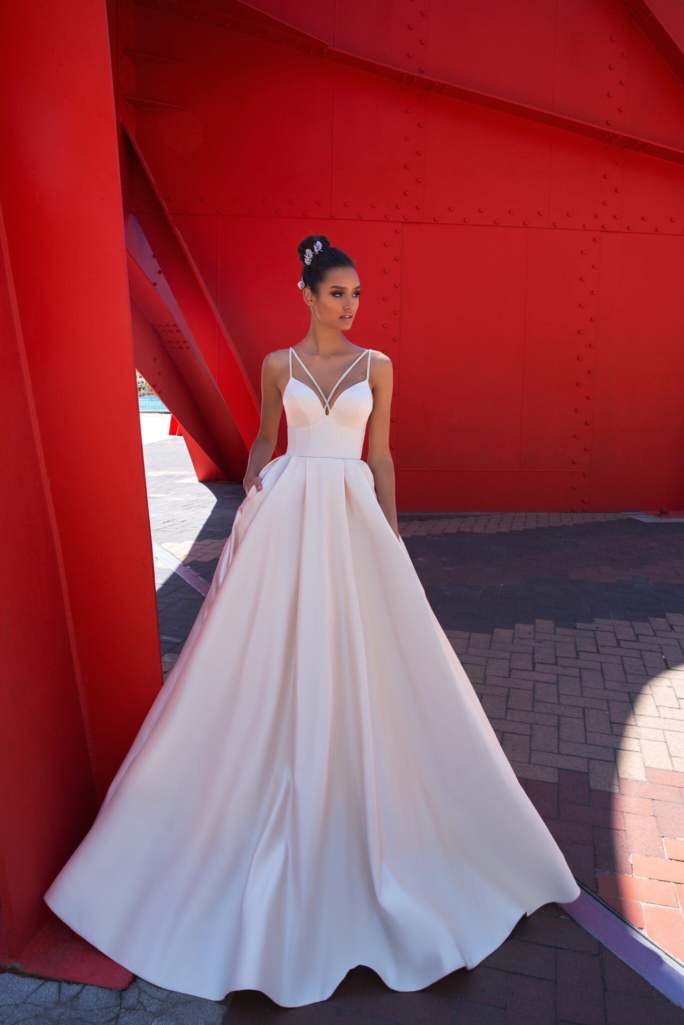 ParisThere’s no match for the elegance of Elis. Its a-line design, draped in the luxury of mikado silk, is a bridal dream come true. Every detail speaks of its grandeur, ensuring the bride feels nothing short of spectacular.