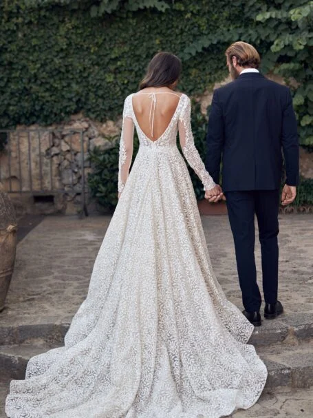 Love storiesEster is a beacon of bridal elegance. Its a-line silhouette, adorned with the luxury of lace, ensures a regal and commanding presence. It’s a gown that promises to be the highlight of any wedding, setting new benchmarks in bridal fashion.