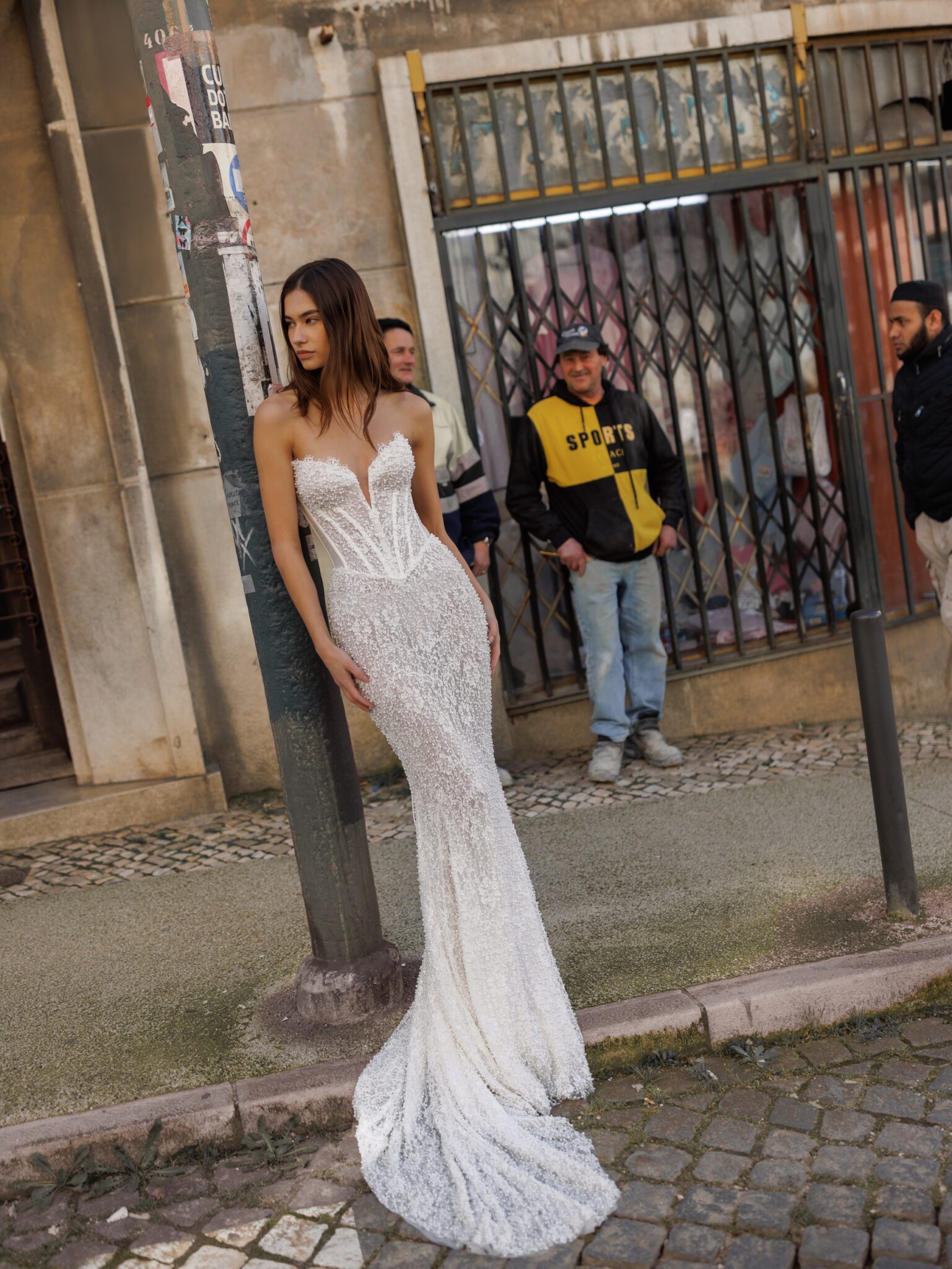 Bridal AlchemyFairy Dress is an ultra-feminine silhouette crafted entirely from delicate lace and adorned with shimmering pearls. The gown features a lace-up corset that beautifully shapes the waist. The beautifully designed neckline highlights the décolletage, adding a romantic and graceful touch. The back of the corset is semi-sheer, adding a hint of allure, and left unembellished to highlight the elegance of the lacework. Perfect for brides who dream of a romantic and ethereal look.