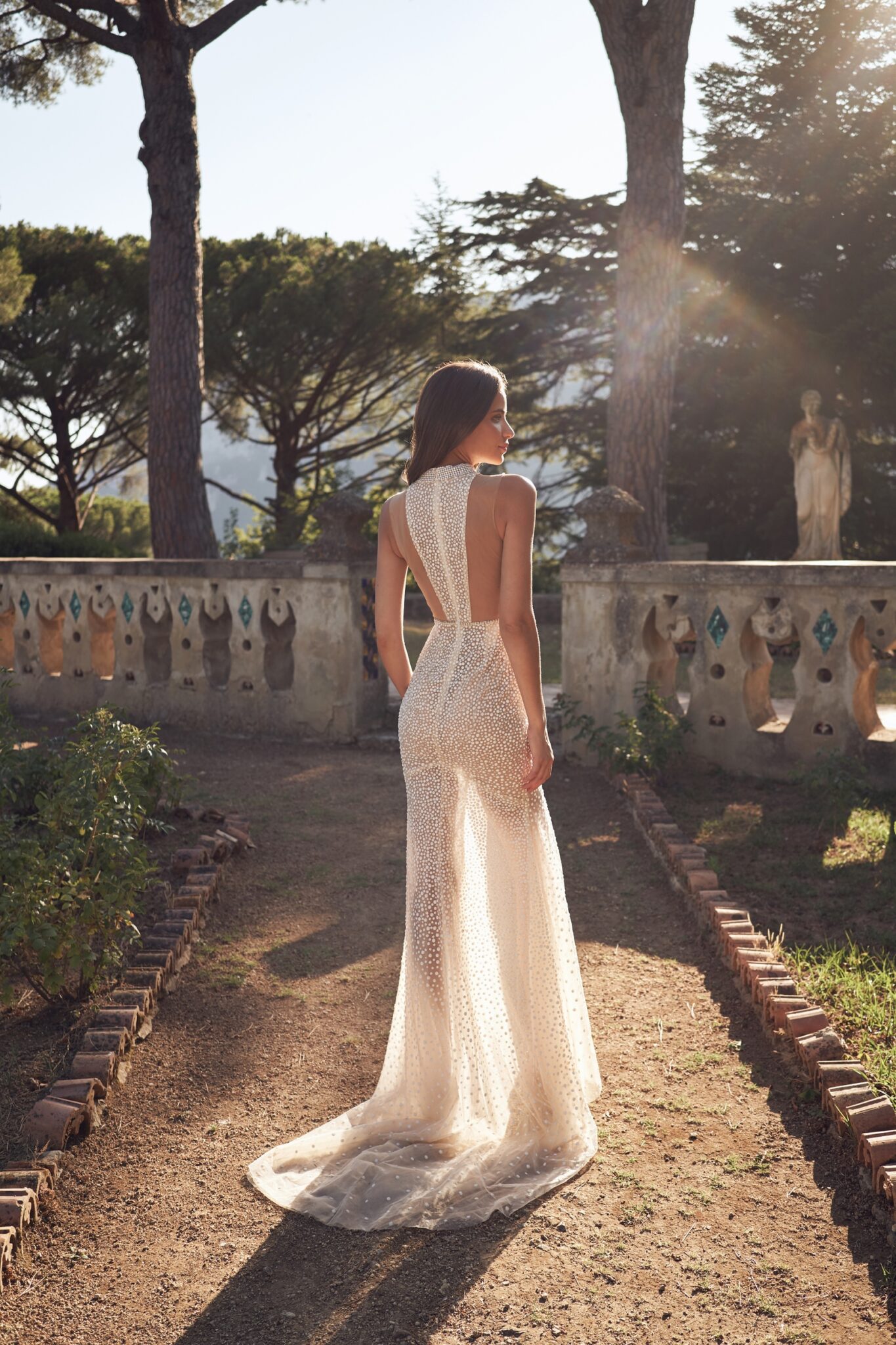 Love storiesDiscover the magic of bridal couture with Fiji. Its enchanting sheath silhouette, paired with the softness of lace, ensures a look of regal sophistication. Every bride deserves to look and feel her best, and this gown promises just that.