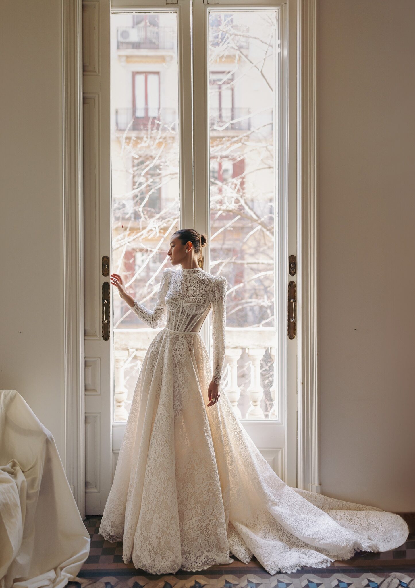 Buttons wedding dress «Genesis» with shoulder pads