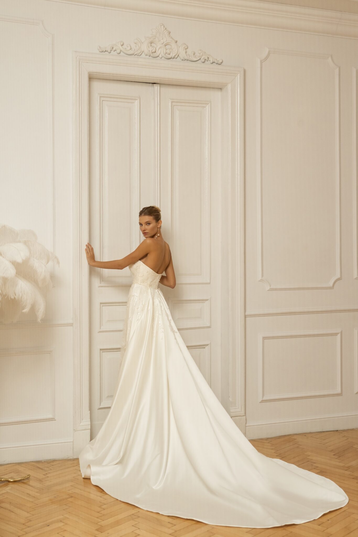 Low back wedding dress «Isola» with detachable overskirt