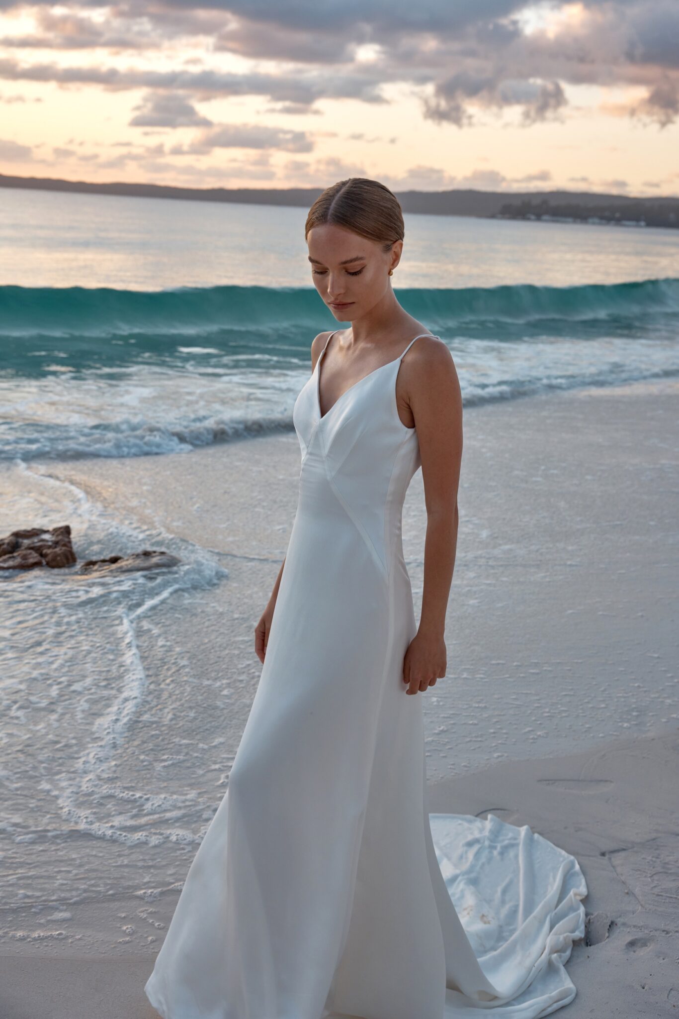 Boat wedding dress «June» with detachable cape