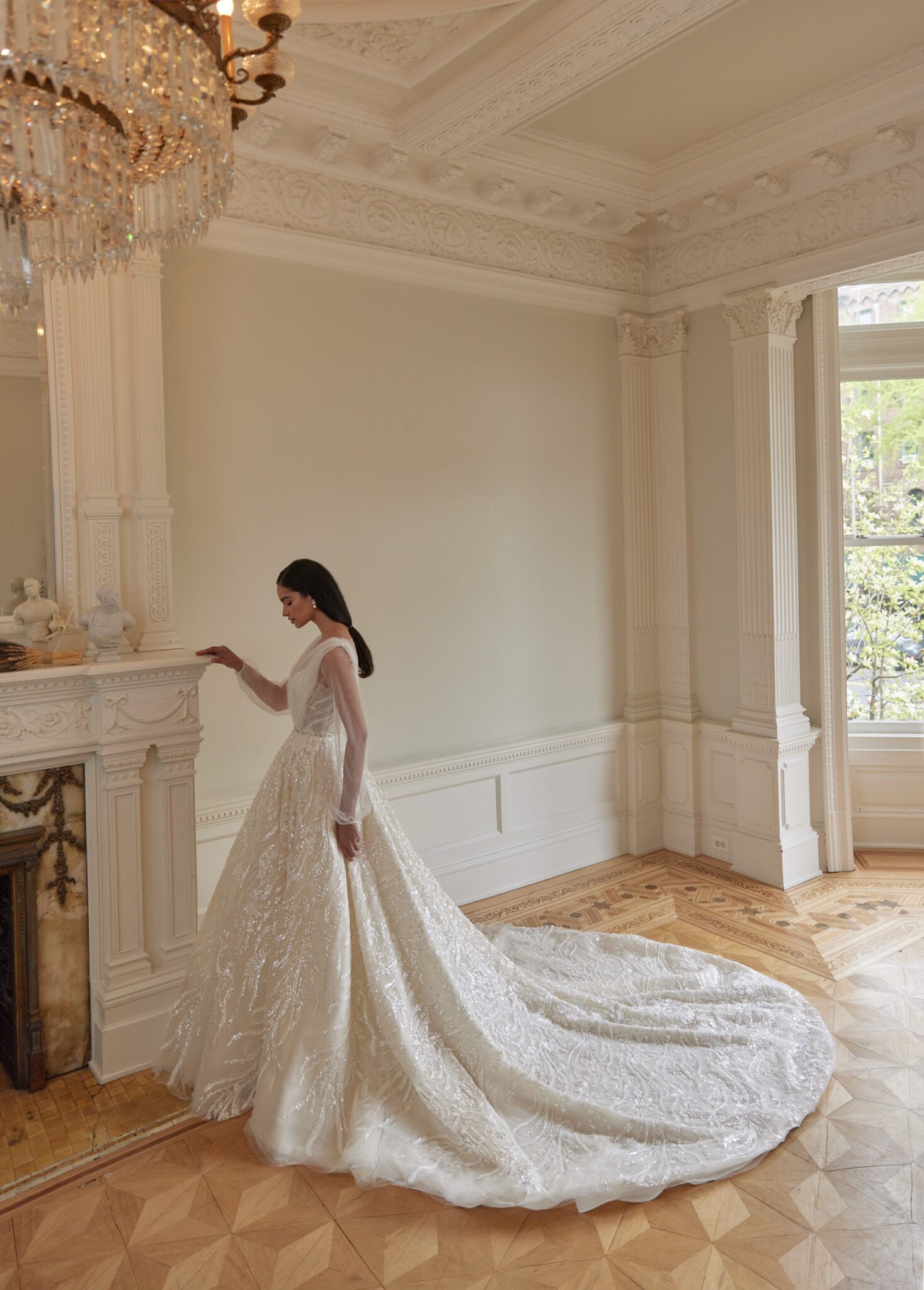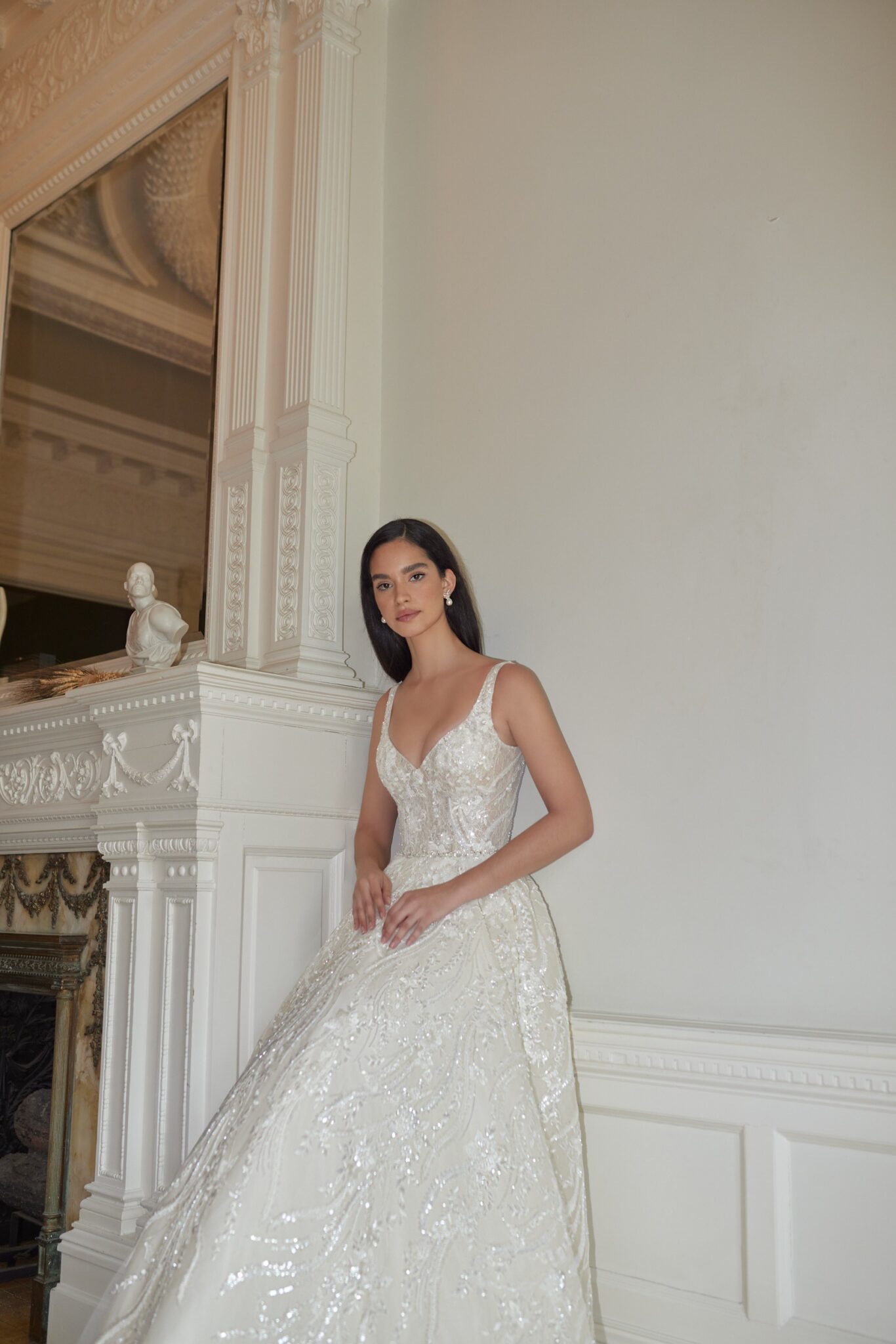 Love in the CityElegance, charm, and a sprinkle of magic – that’s Kara for you. This gown, with its a-line silhouette, stands as a testament to what happens when craftsmanship meets passion. Draped in the luxury of fully beaded, lace, sparkle, it’s every bride’s dream realized.