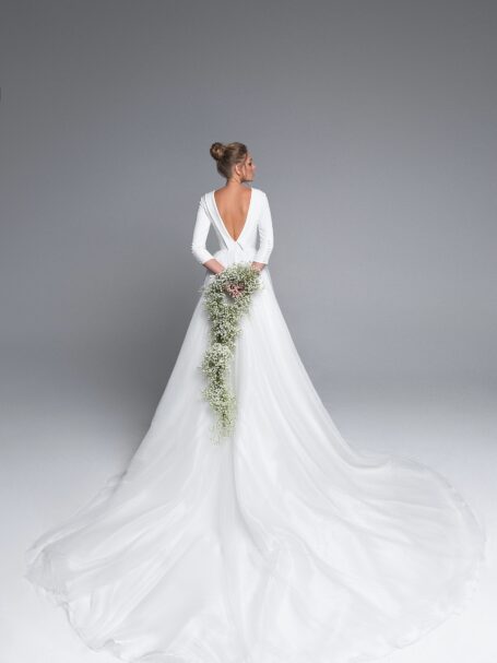 Less is more 2019, Plus SizeThe allure of Kylie is hard to overlook. Its a-line design, paired with the opulence of lace, mikado silk, sparkle, is a bridal dream realized. Every detail is meticulously crafted, ensuring a look that’s both regal and enchanting.