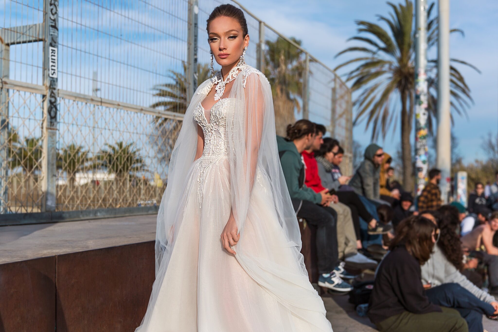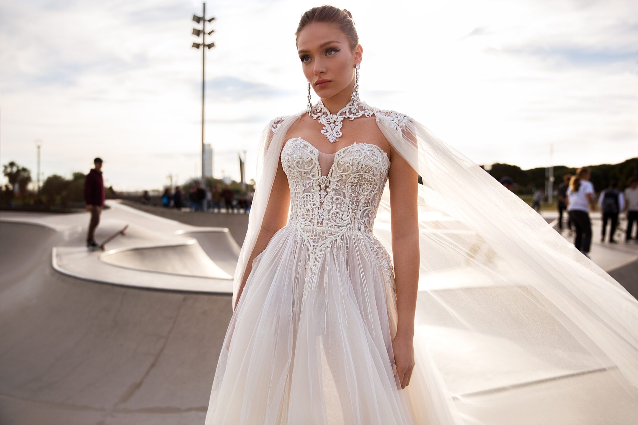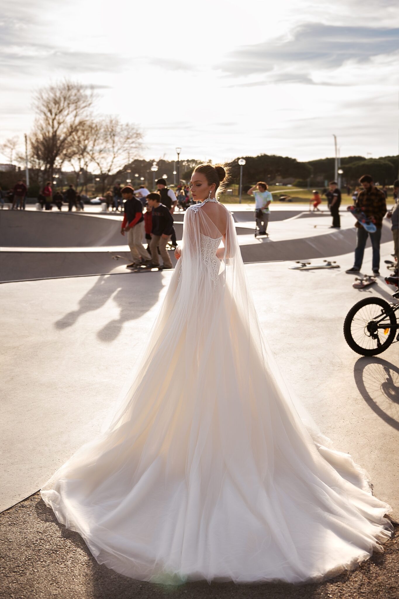 Low back wedding dress «Lora» with detachable sleeves