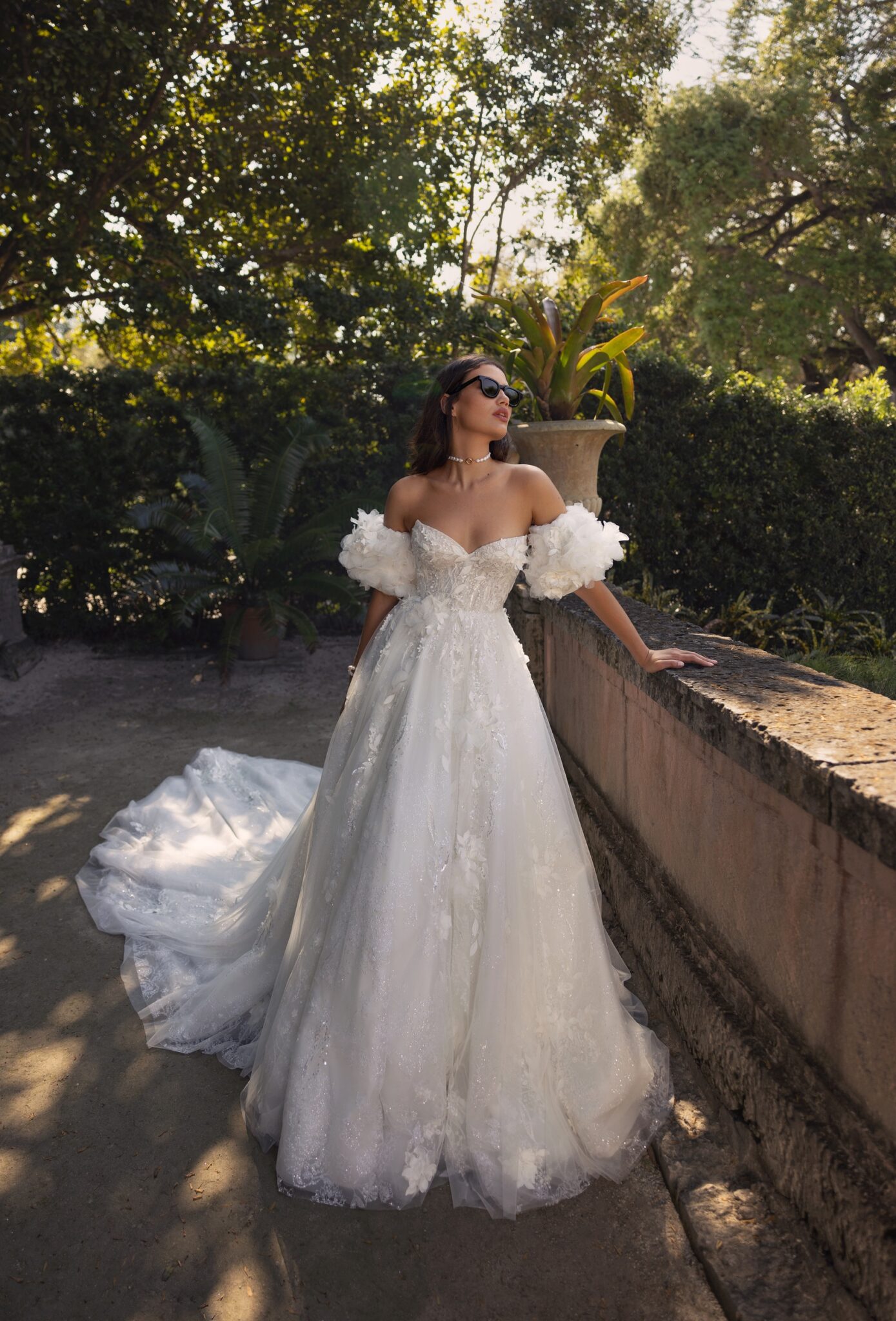 Miami Bliss, Plus Size, Sample SaleMake your wedding day dreams a reality with this enchanting A-line wedding dress. The intricate floral lace fabric creates a romantic and feminine feel, while the corseted bodice with a sweetheart neckline accentuates your curves and exudes elegance. The detachable puffy sleeves add a playful touch and allow you go for a customizable look. The A-line silhouette flows effortlessly, ensuring both comfort and grace as you walk down the aisle. This dress is perfect for the bride who wants to feel both whimsical and sophisticated while walking down the aisle.