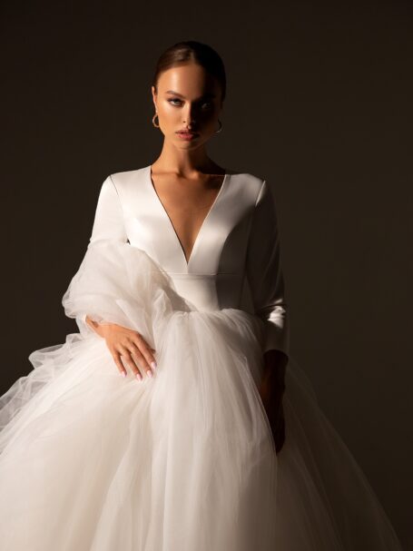 Muse, Plus SizeBridal dreams come alive with Nizza. Its a-line silhouette, paired with the softness of satin, is a vision of elegance and luxury. Every detail is meticulously crafted, promising a look that’s both timeless and modern.