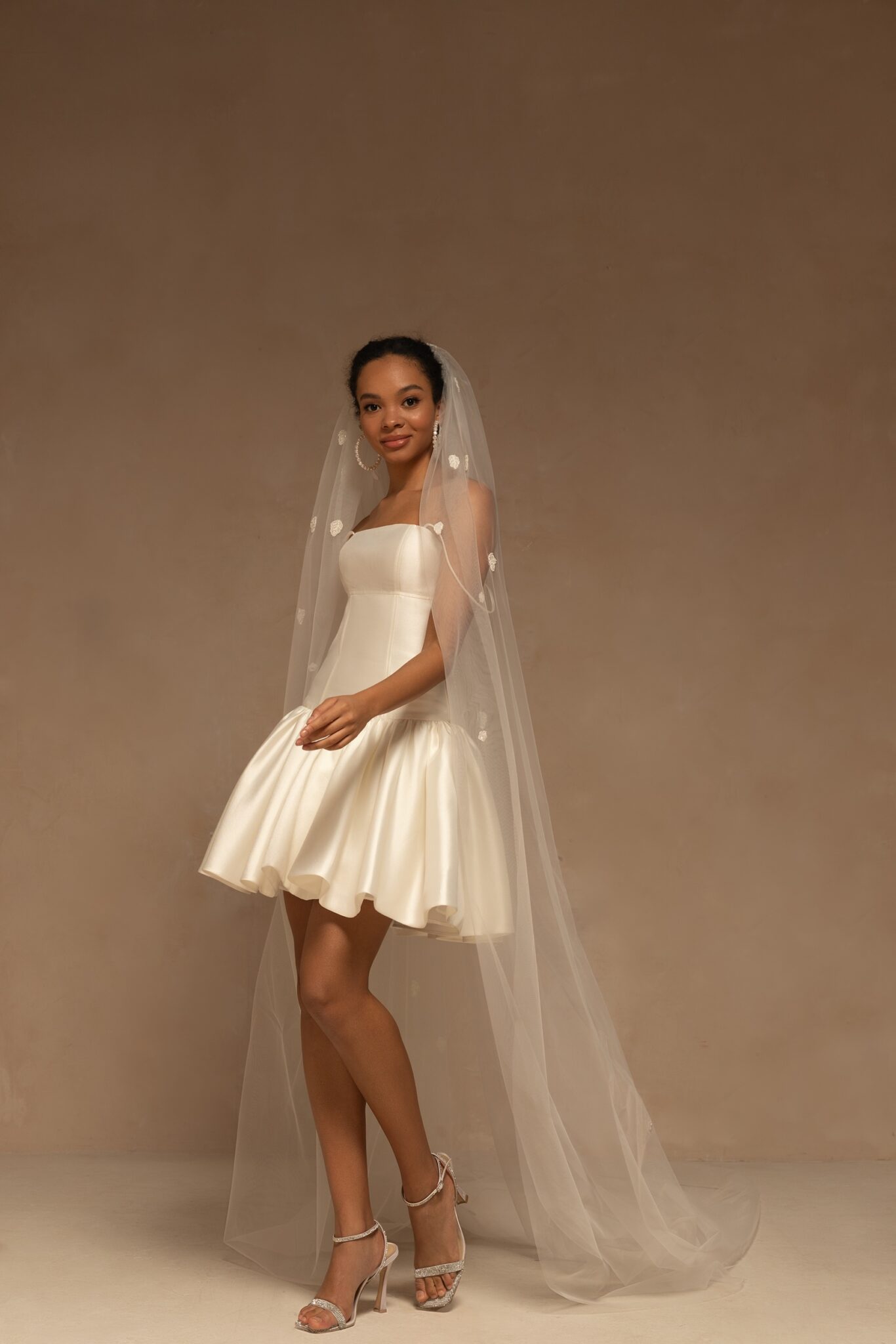 VeilsStylish minimalistic single-tier veil made of tulle and decorated with small beaded appliques through all length. Available in cathedral length.