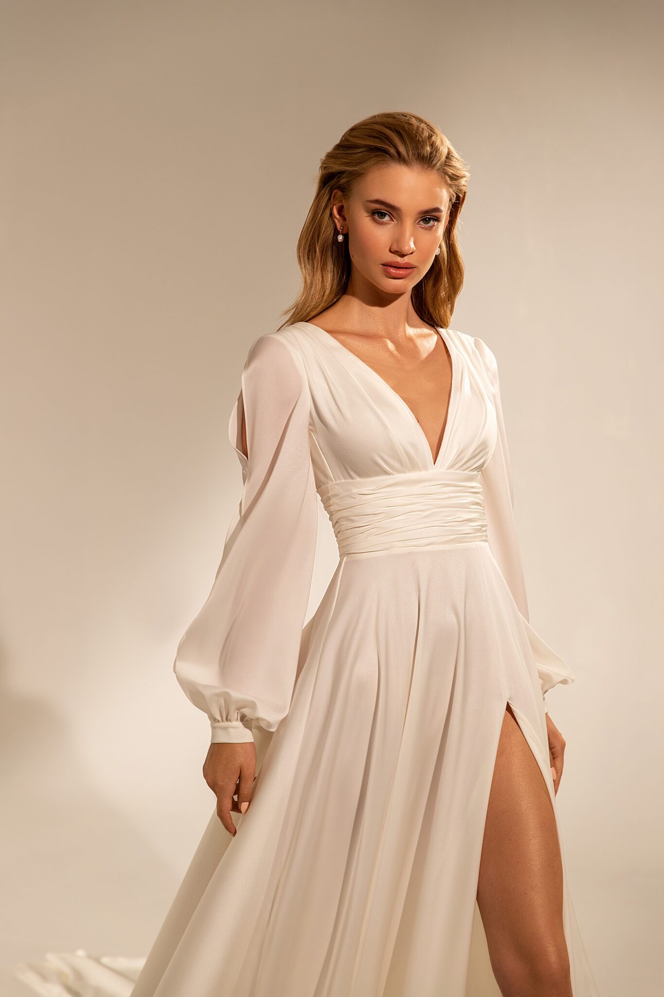 MuseChoose a Provance ball gown to get a stunning wedding look. A V-shaped low neck and deep neckline at the back of the dress look fabulous. A belt accentuates the waistline. A loose skirt is made of many layers of shining veiling. The skirt passes into a train. A-line Provance dress looks fabulous. Long sleeves and a deep neckline at the back of the dress look fantastic. A fabulous skirt passes into a long train.