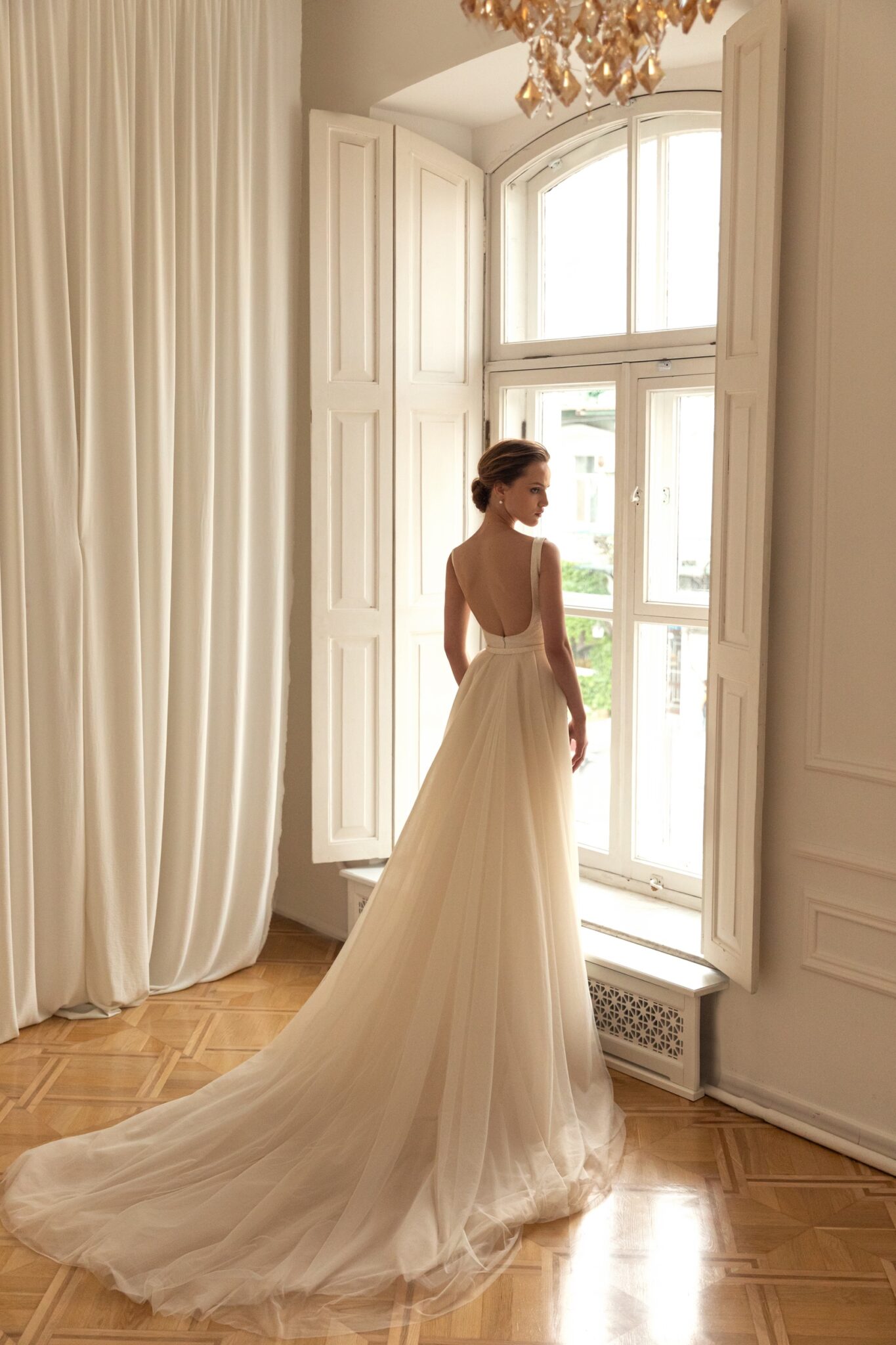 Boat wedding dress «Rory» with detachable overskirt