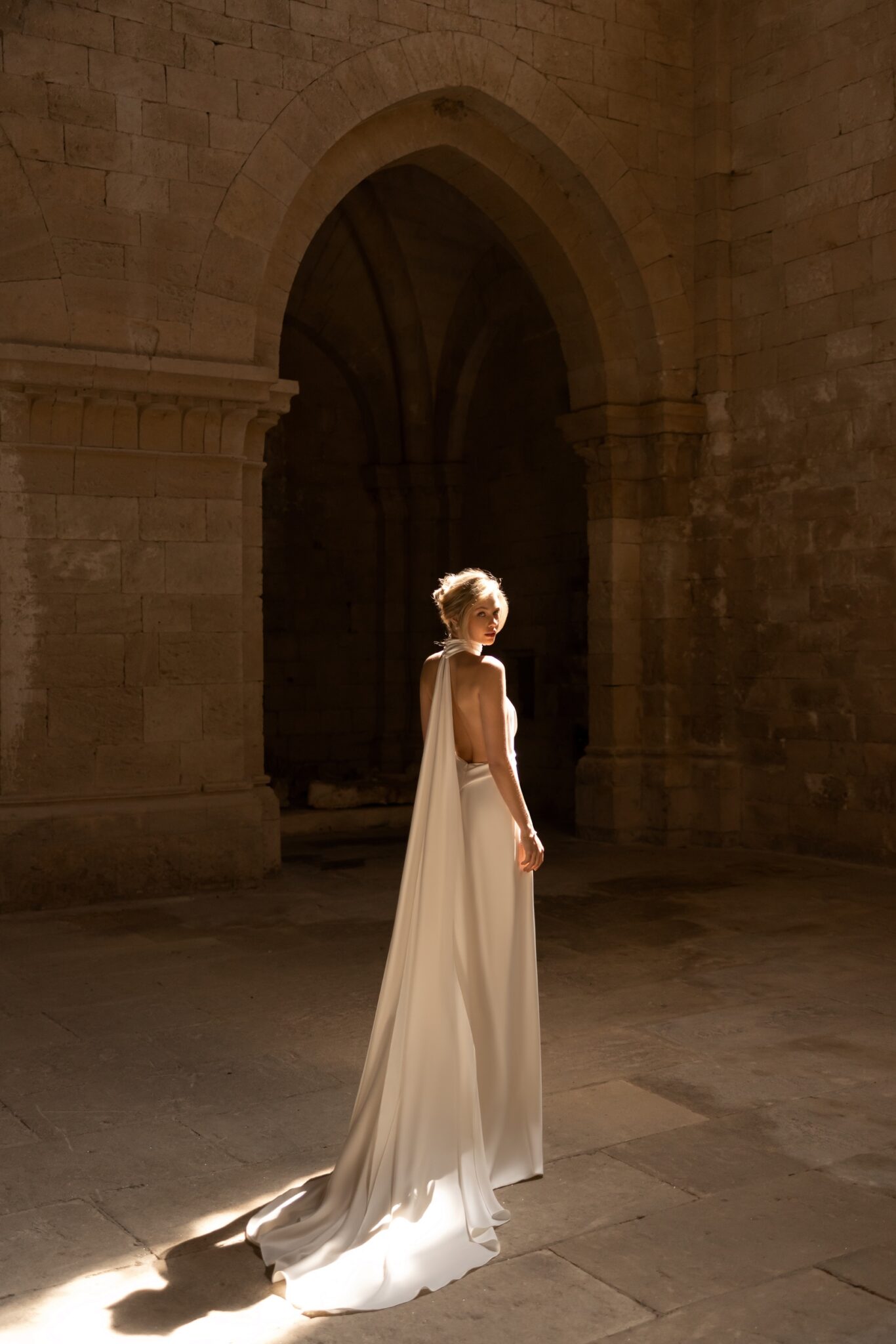Open wedding dress «Rouge» with cape