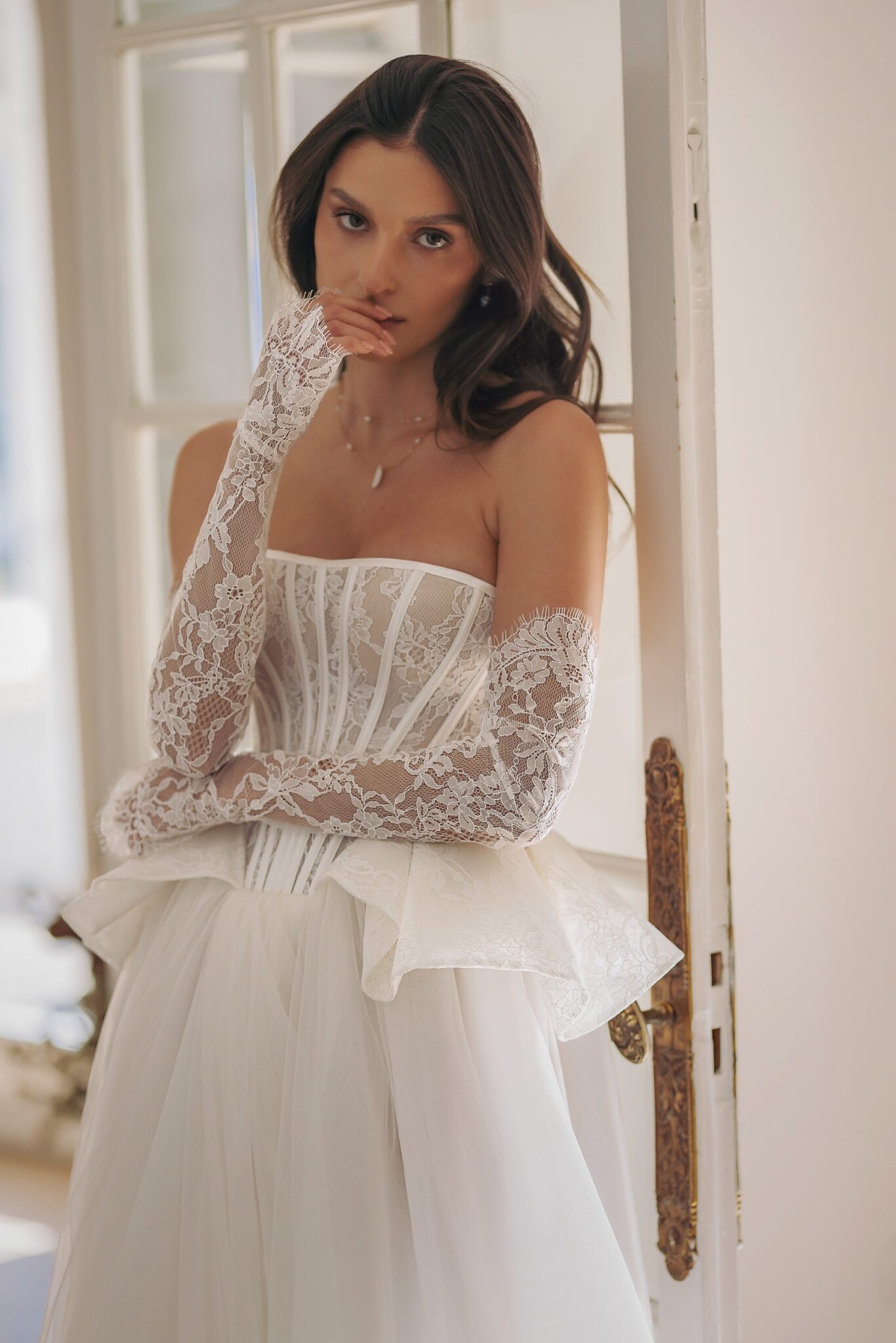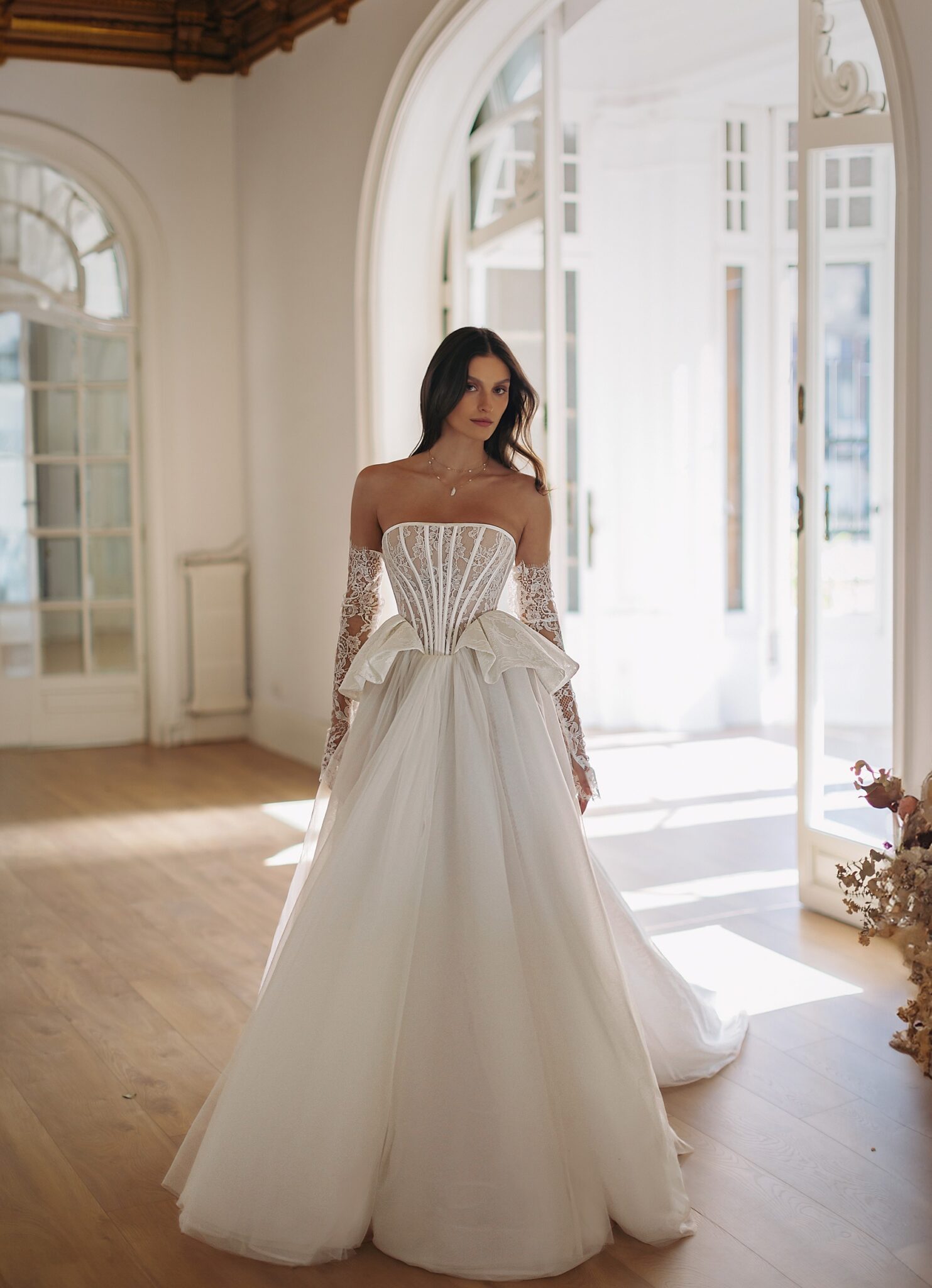 Lacing wedding dress «Sabotage» with detachable sleeves
