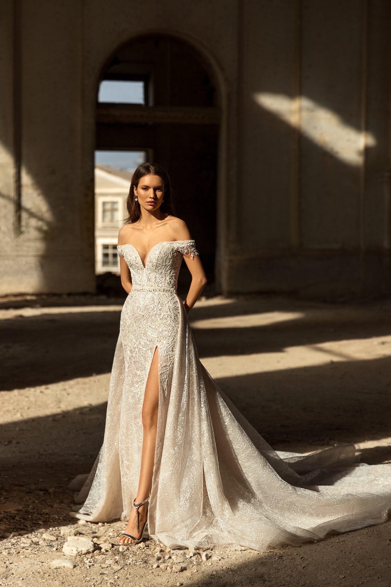 Golden Hour, Plus SizeSydney gown is fully decorated gown with a deep sweetheart neckline. The dress is perfectly matching with detachable skirt from the same lace.
