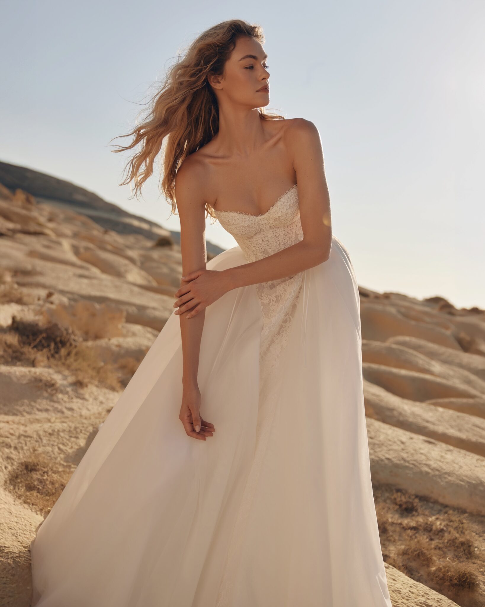 A dramatic long train completes the look, making Topaz a perfect choice for brides who adore classic charm with a touch of grandeur.