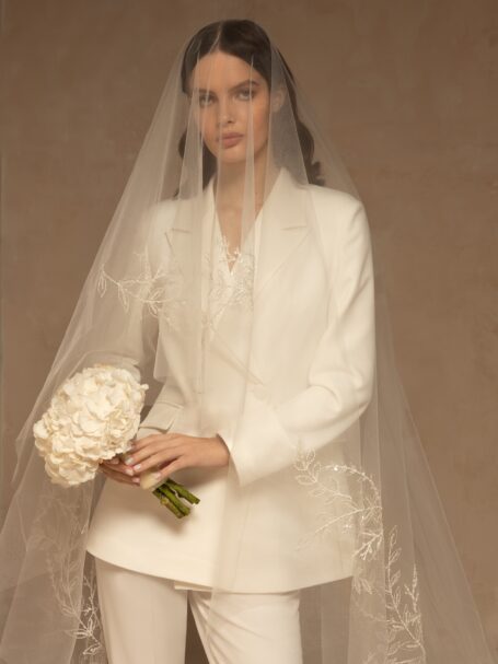 VeilsBeautiful laconic single-tier veil made of plain tulle and decorated with oversized floral appliques. Available in cathedral length.