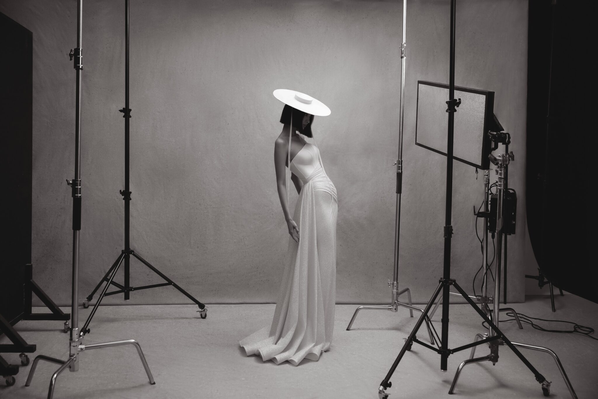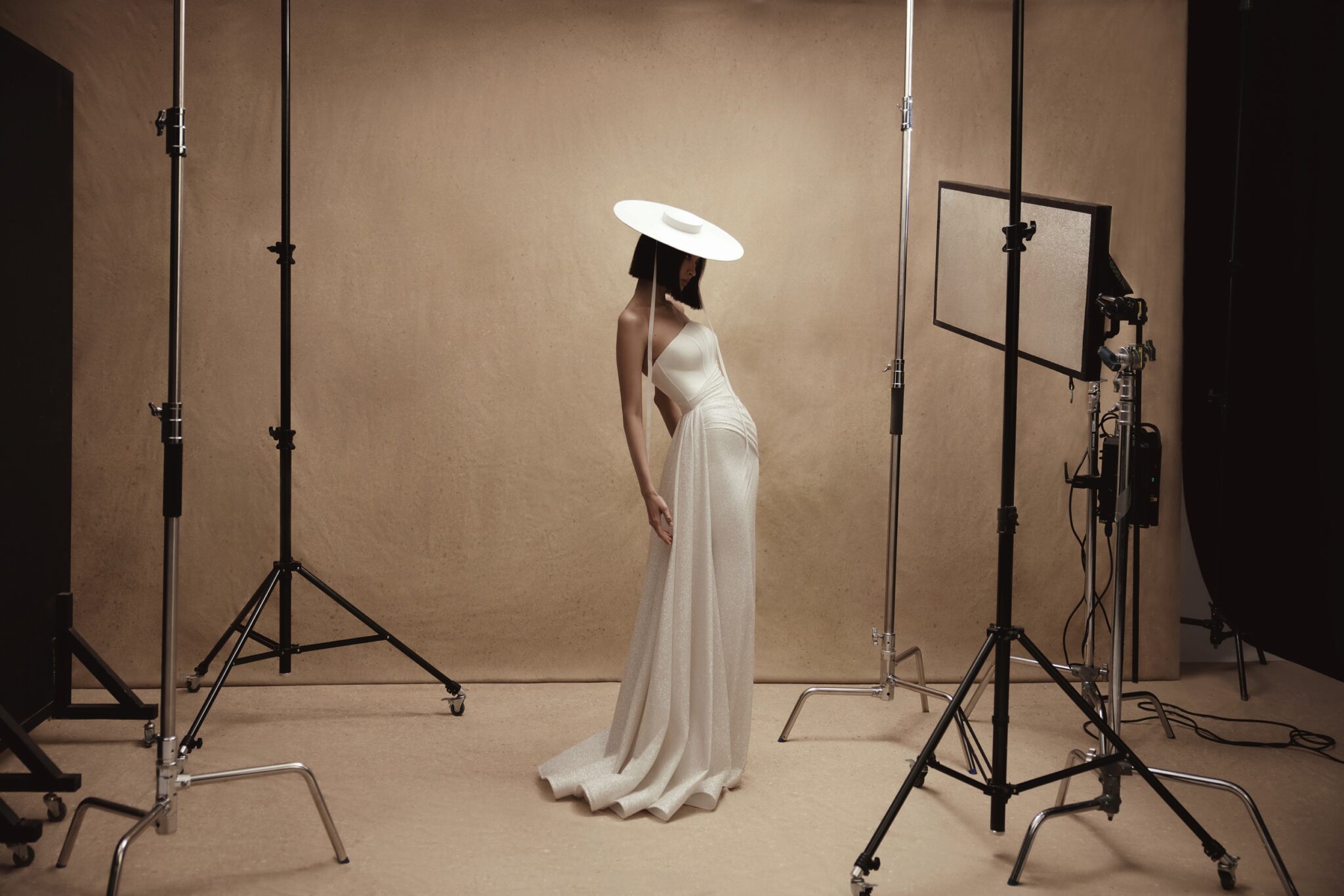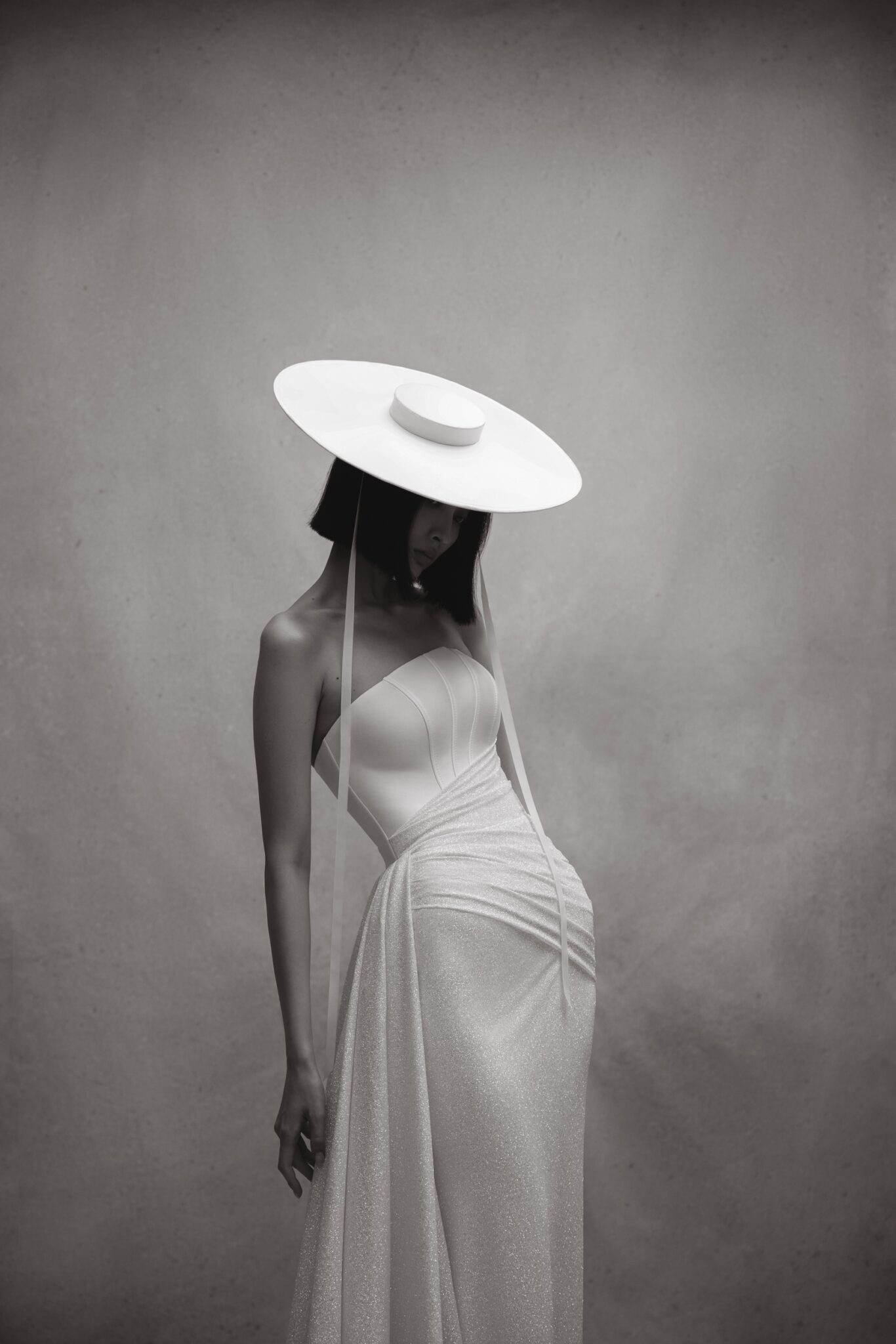 Personality, Plus SizeA gown is made of two kinds of fabric – stiff mikado and sparkling satin. Venera features an asymmetric Straight strapless corset that creates a feminine silhouette and highlights the bride’s waistline. A ssheath skirt falls to the floor length and an exquisite additional train made of mikado fabric is fixed on the waists.