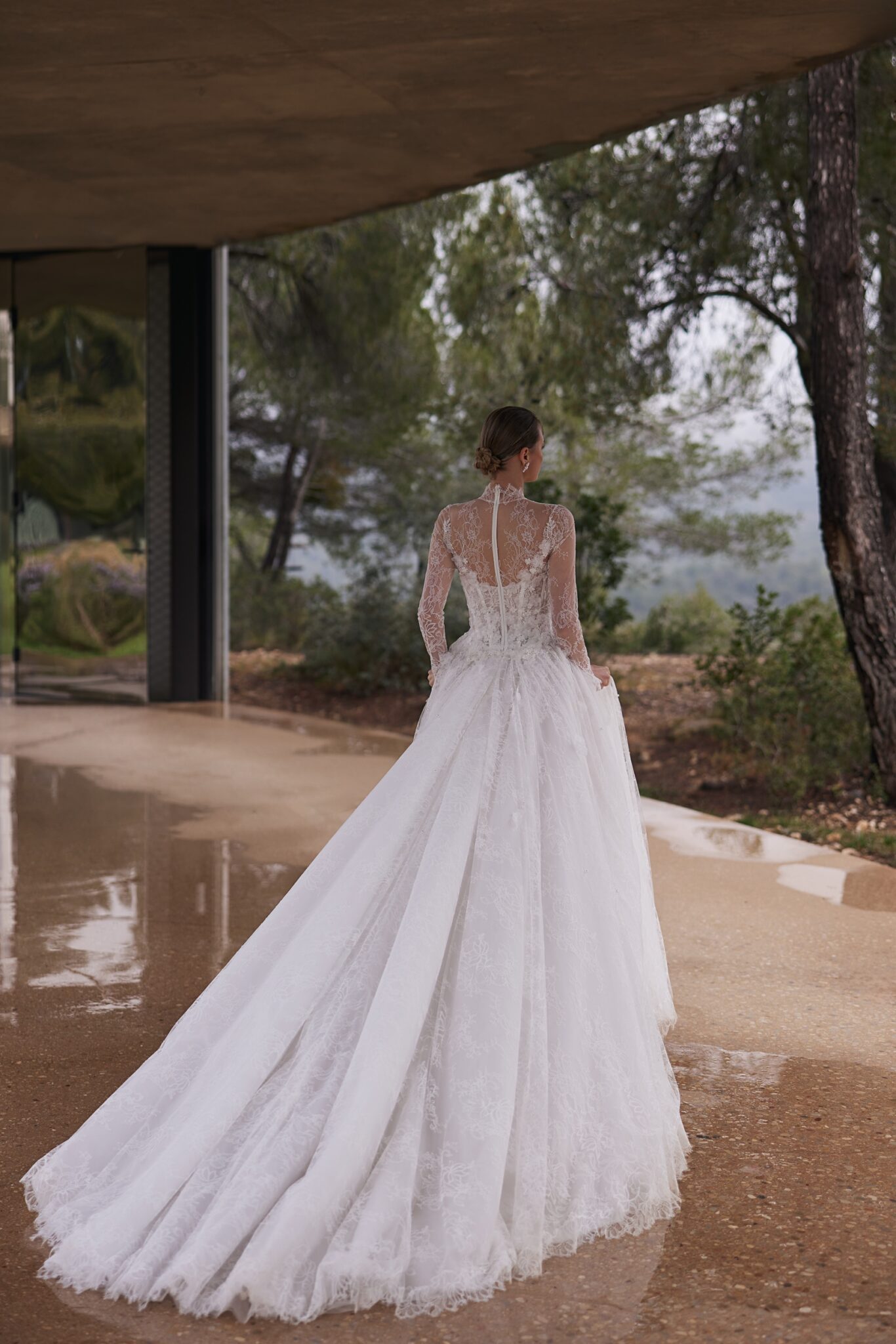 Every step is a symphony of beauty and poise, as the train adds a touch of drama and grandeur to your entrance.