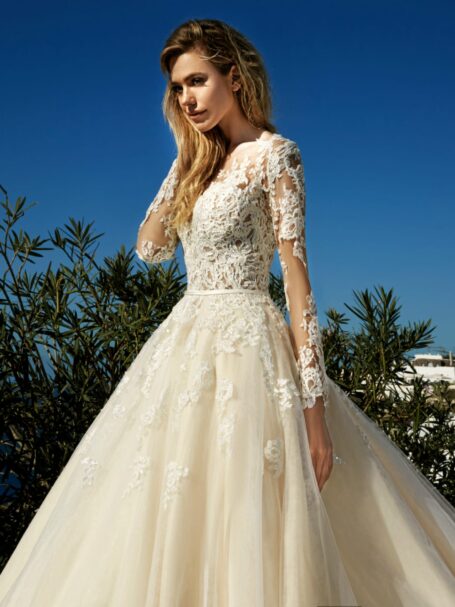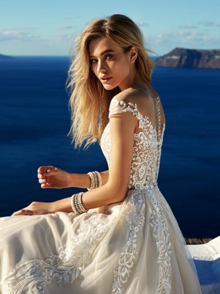 Santorini CampaignThere’s a timeless beauty to White. Its nan silhouette, adorned with the plushness of lace, tulle, ensures a bridal look that’s both classic and modern. It’s a gown that promises to make the bride the talk of the town.