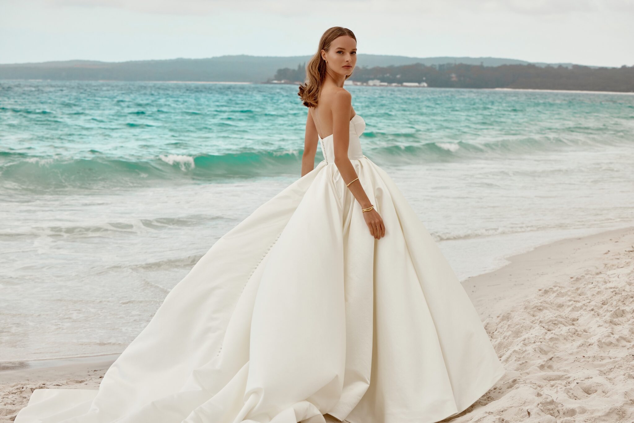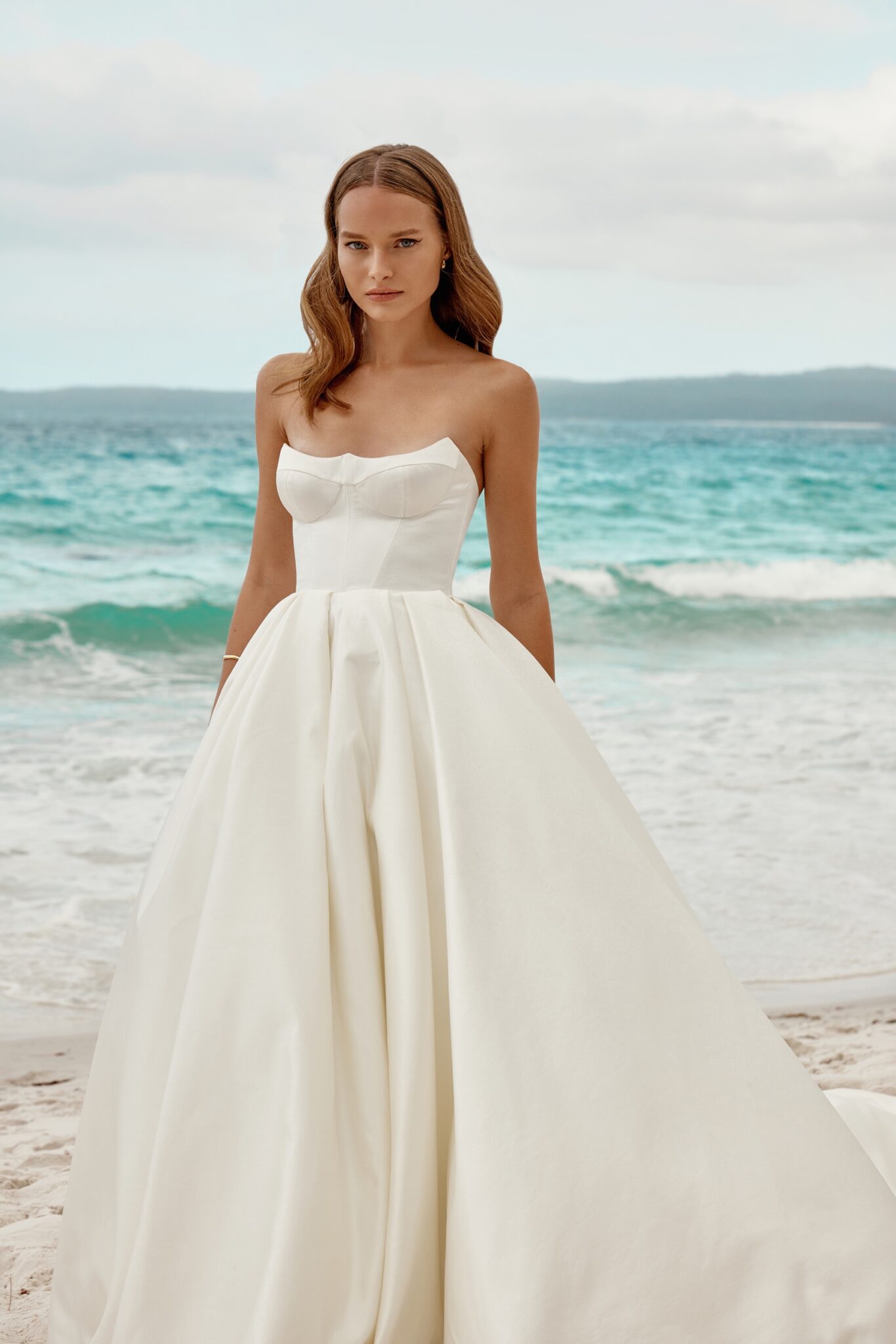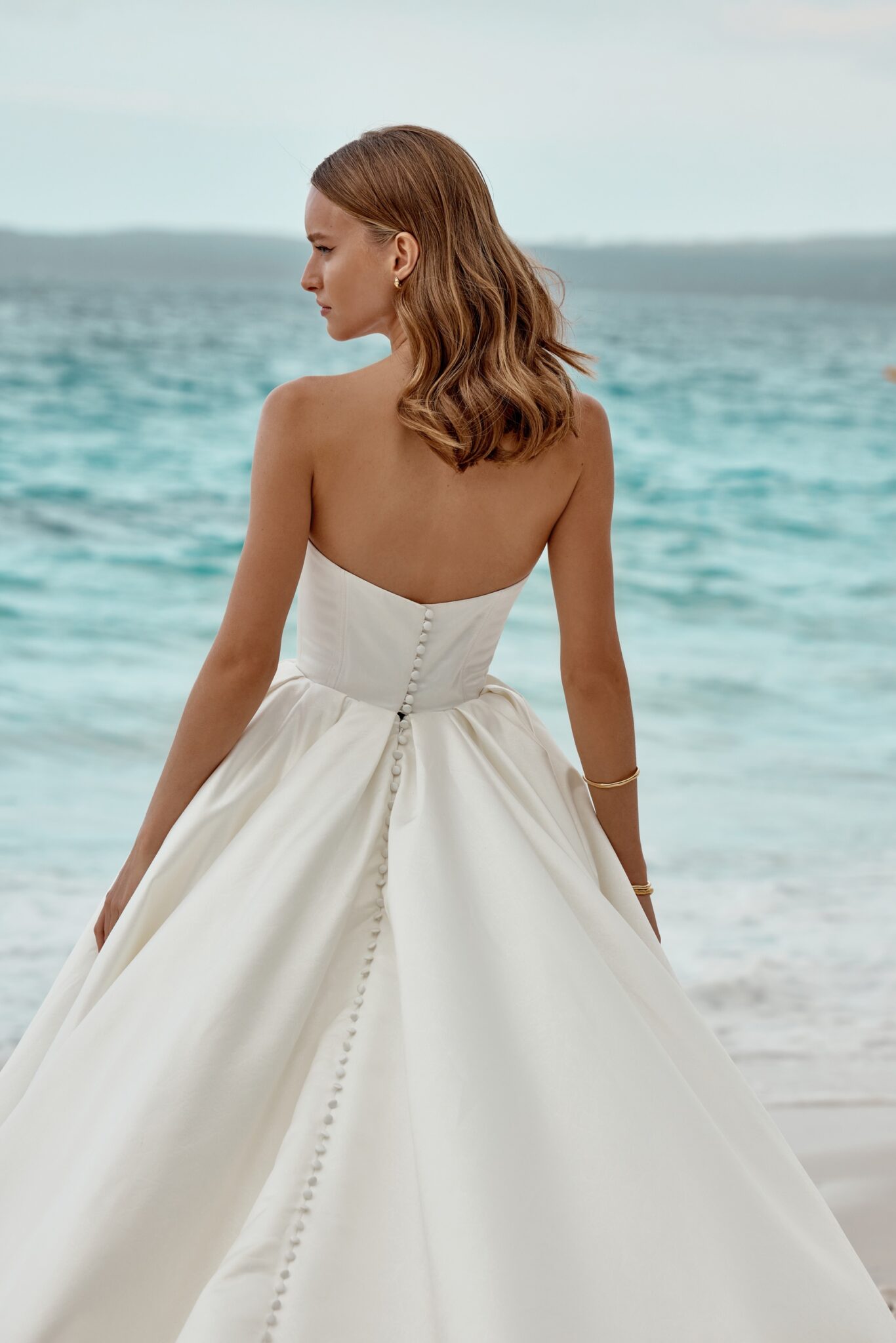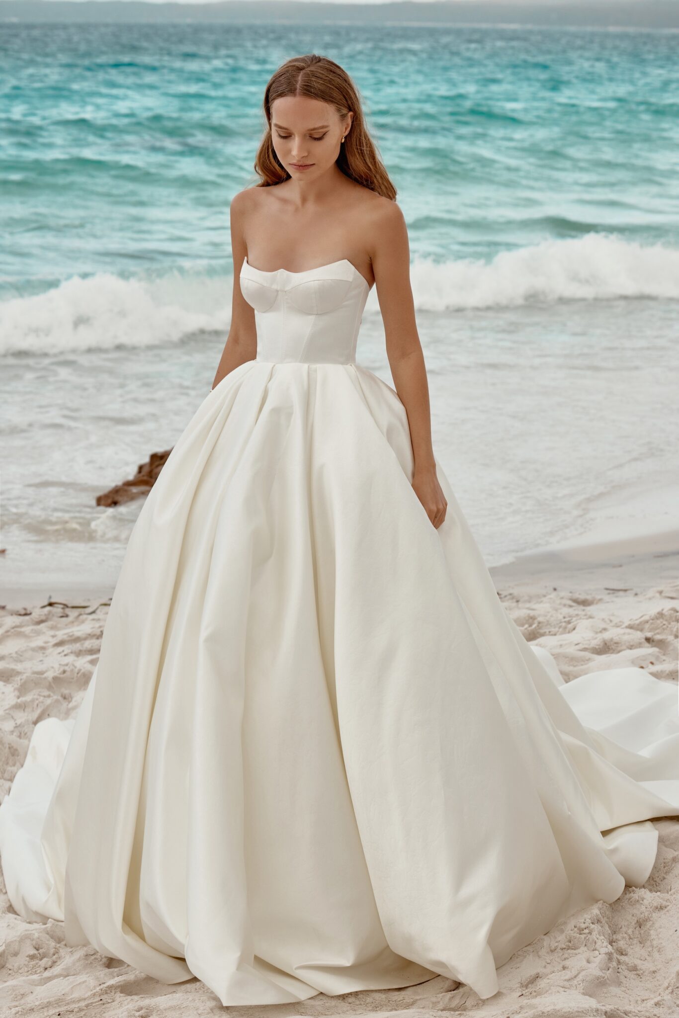 Atelier signature editionThis ballgown wedding dress is a vision of timeless elegance, crafted from exquisite jacquard fabric that adds a touch of regal grandeur. The strapless neckline exudes modern chic, making it a perfect choice for the bride who desires a look that seamlessly blends classic charm with contemporary style on her special day.